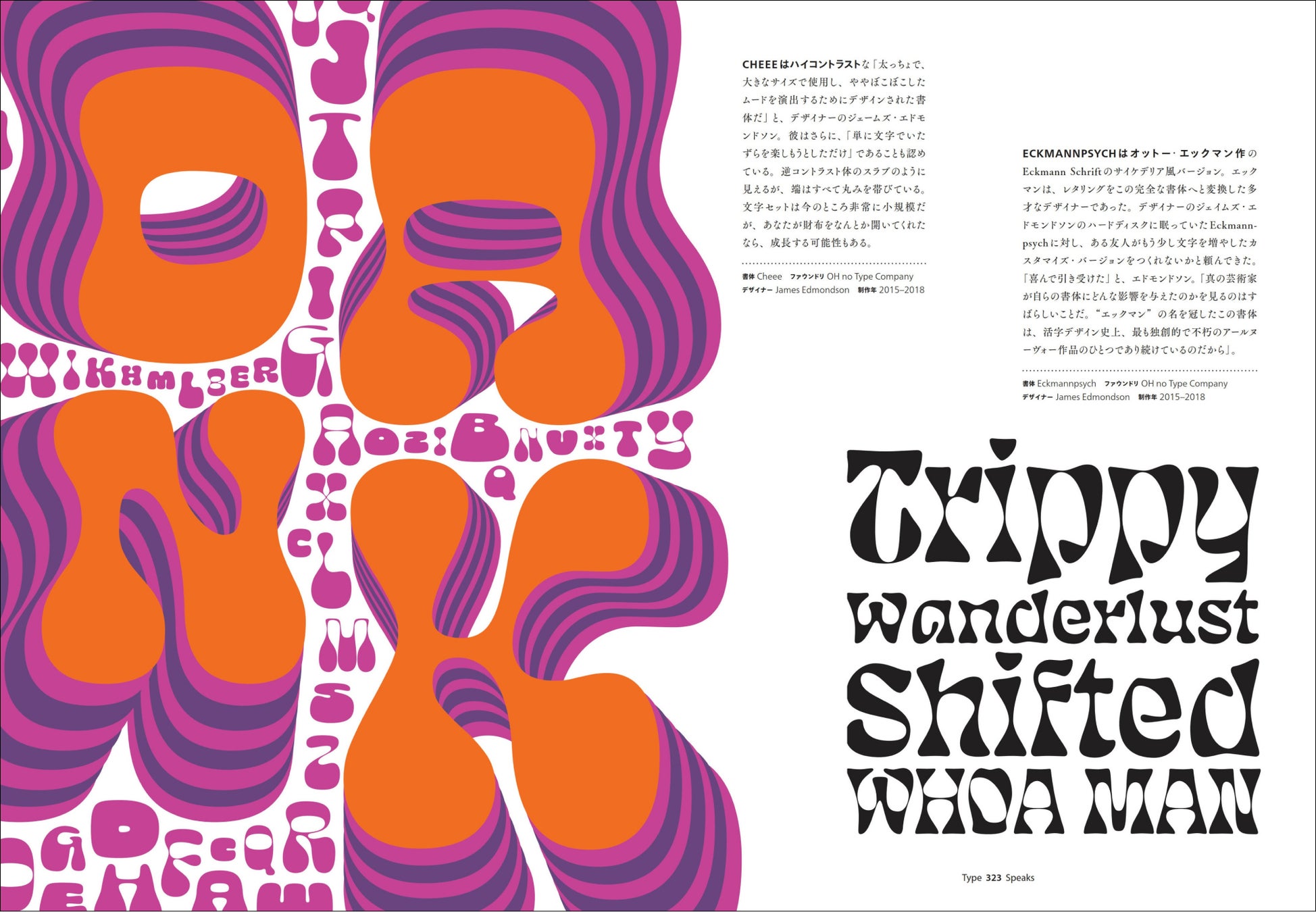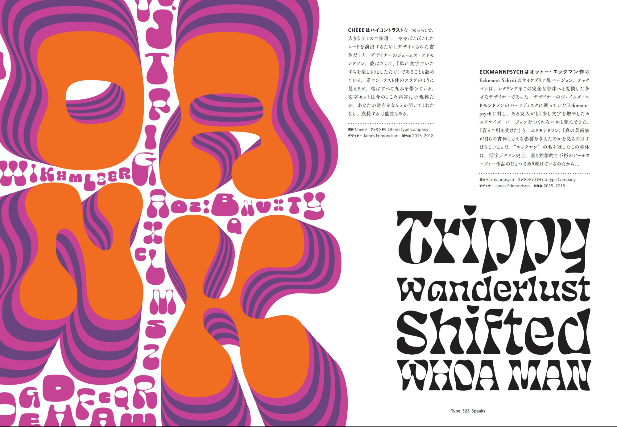 オットー・エックマン作のEckmann Schriftのサイケデリア風バージョン。エックマンは、レタリングをこの完全な書体へと変換した多才なデザイナーであった。デザイナーのジェイムズ・エドモンドソン「真の芸術家が自らの書体にどんな影響を与えたのかを見るのはすばらしいことだ。“エックマン”の名を冠したこの書体は、活字デザイン史上、最も独創的で不朽のアールヌーボー作品のひとつであり続けているのだから」。