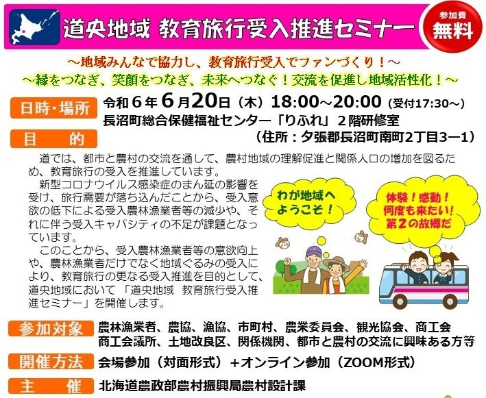 6月20日開催の「道央地域教育旅行受入推進セミナー」の参加者を募集しています!