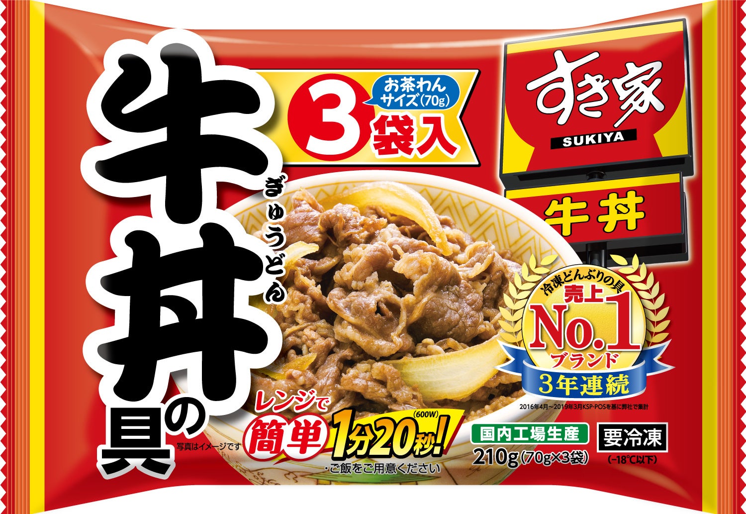 すき家のロゴを強調し、おいしそうなシズル感のあるパッケージに仕上げています。