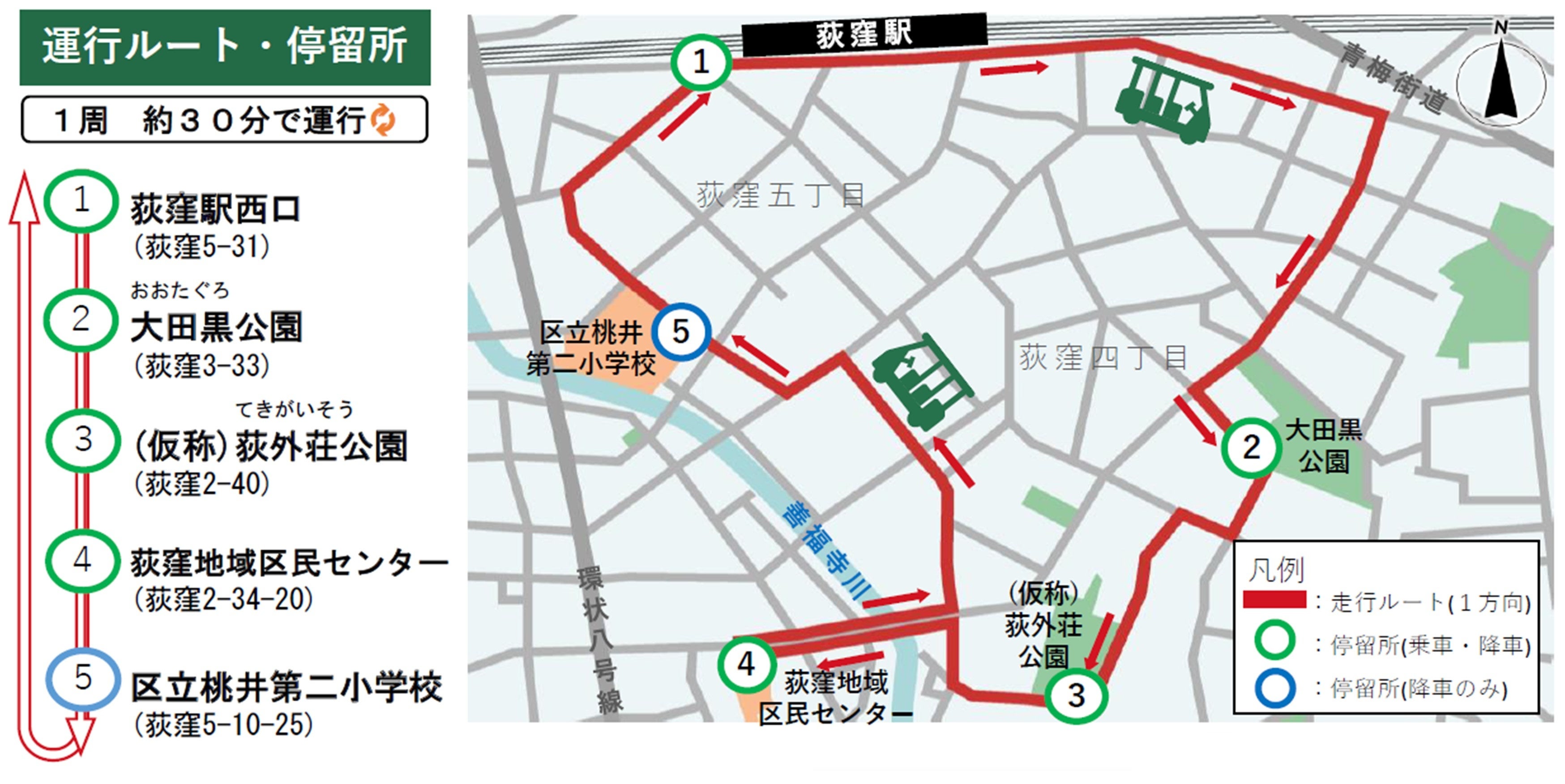 ・連続乗車は1周まで、荻窪駅西口で降車にご協力ください。