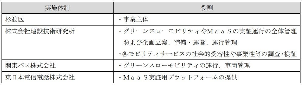 この度、3社が連携して、グリーンスローモビリティやMaaSの実証運行や企画立案、準備を行うとともに、モビリティサービスの社会的受容性や事業性等の調査・検証などを行います(表1)。