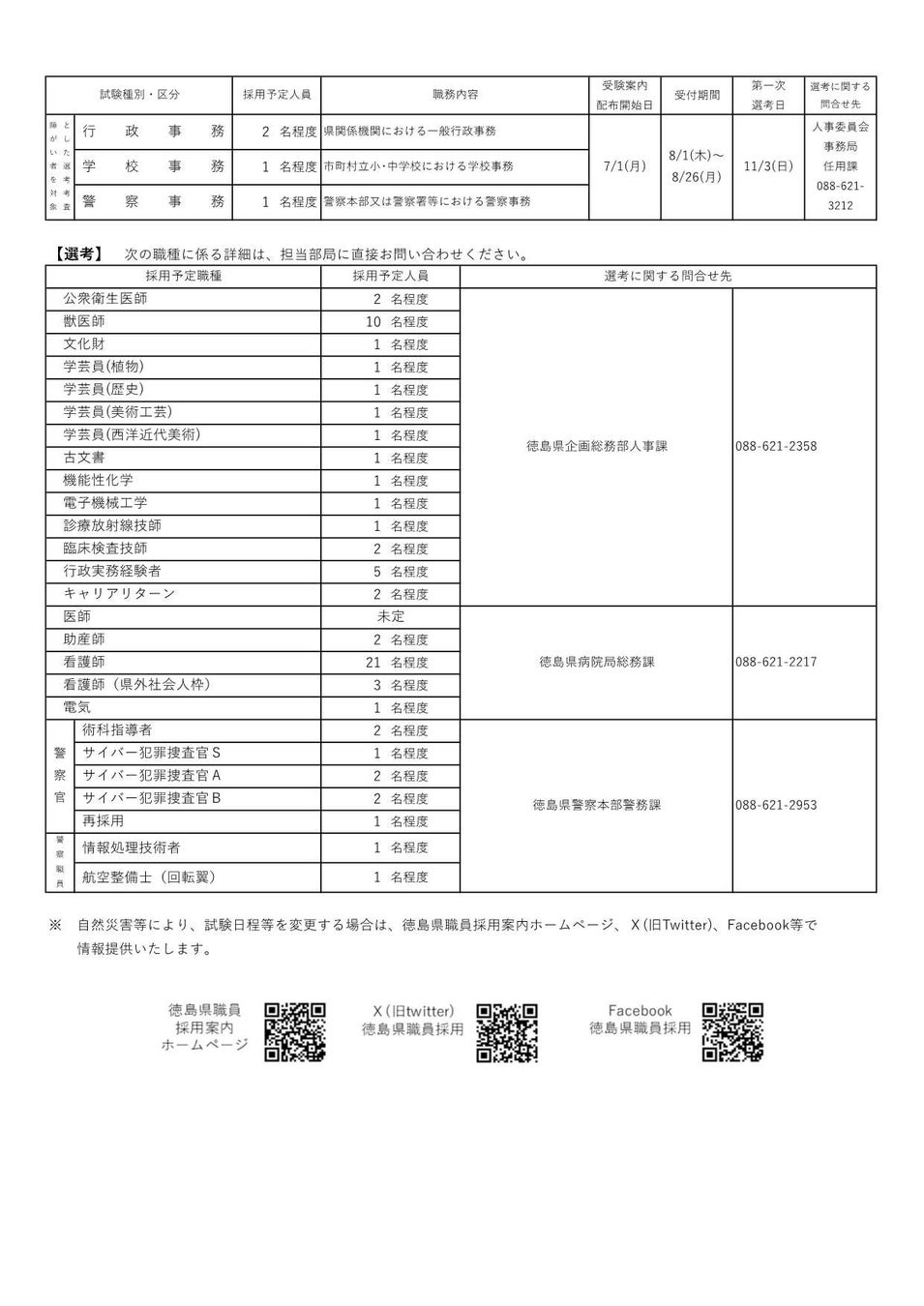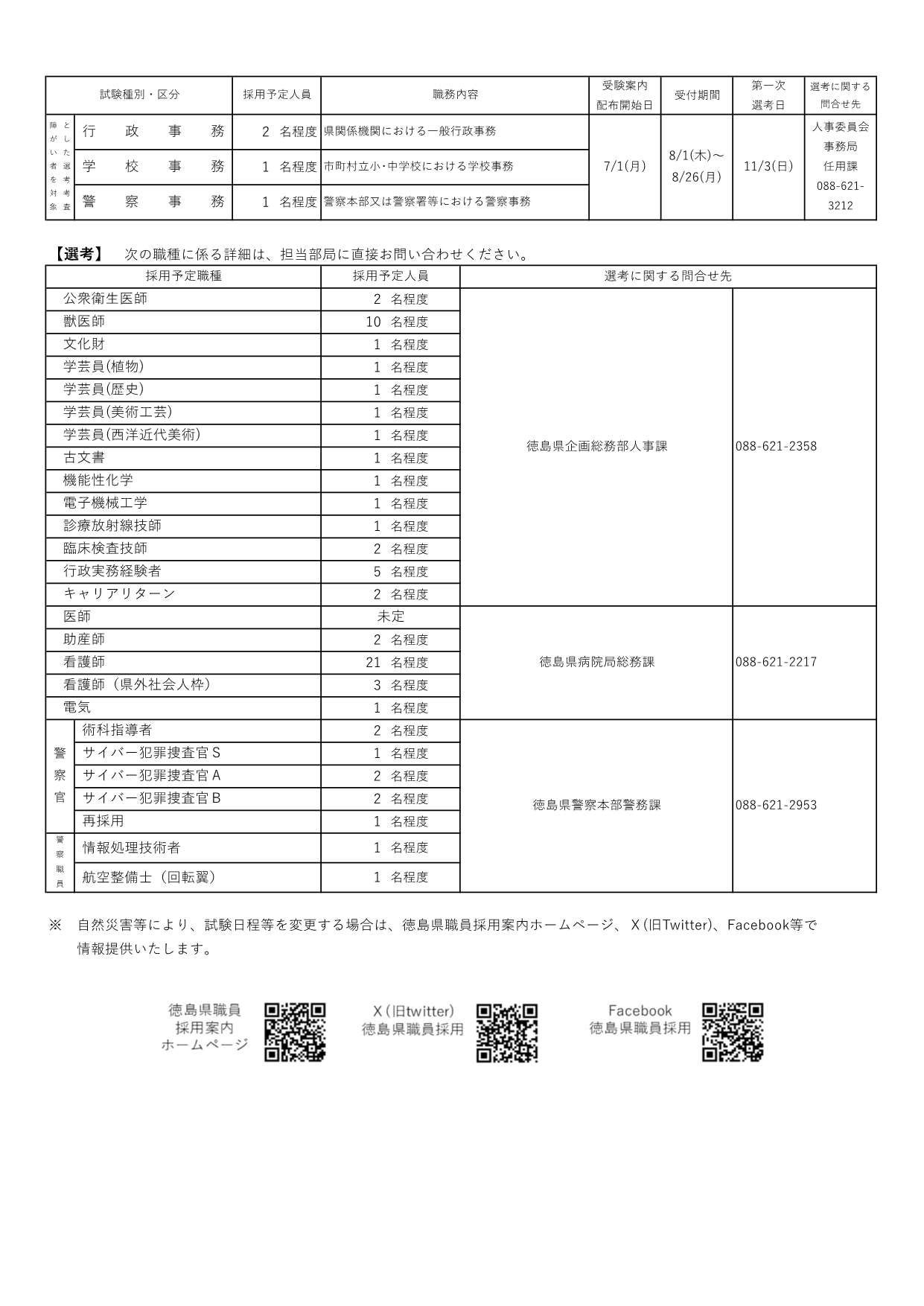 詳細は、徳島県職員採用案内ホームページ等より御確認ください。