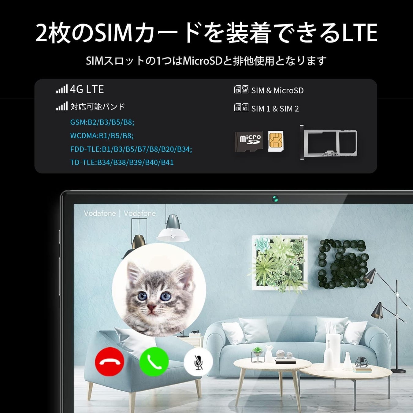 【4G LTE 通話可能 wi-fiモデル タブレット】TDD + FDD 4Gネットワークコール/インターネットをサポートし、VoLTEとキャリアアグリゲーションもサポートして、通話とインターネットへの同時アクセスを実現しました。2.4GHz/5GHzとBluetooth 5.0に対応、高速で途切れにくいWi-Fiデュアルバンドをサポート、安定した通信と高速転送機能を備える。