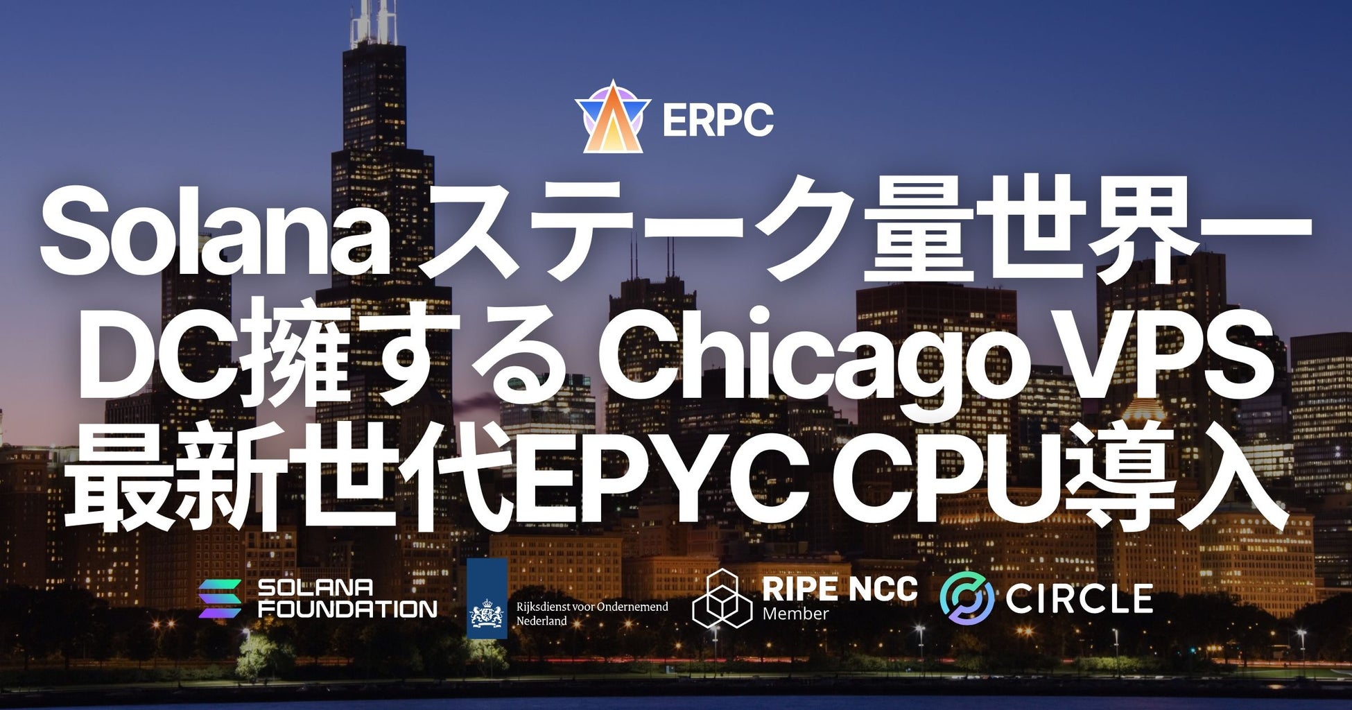 ELSOUL LABO B.V.(本社:オランダ・アムステルダム、代表取締役 CEO:川崎文武)および Validators DAO が運営する ERPC は、Solana ステーク量が世界で最も集積する単一データセンターを擁するシカゴ(Chicago)リージョンにおいて、VPS サーバーに最新の第五世代 AMD EPYC CPU および DDR5 6400MHz メモリを導入しました。