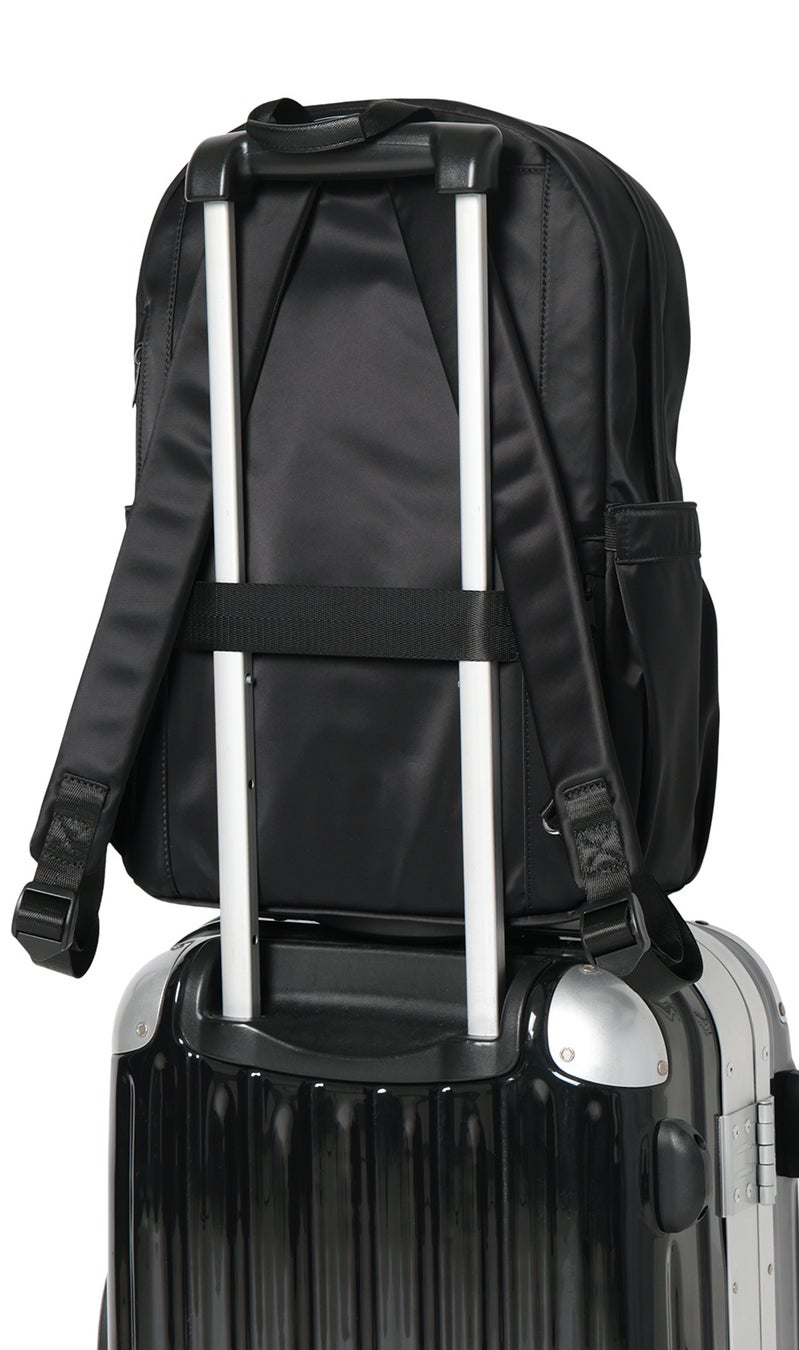 ・キャリーオン仕様:キャリーケースのハンドル部分にバッグを固定でき、出張時にも便利