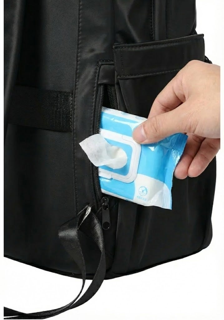 仕事と育児を両立するビジネスパーソンの浸透に伴い、仕事からそのまま子どものお迎えや買い物へ行くといった背景から両手の空くリュックの注目は高まっています。本企画はそんな働く女性にも嬉しい仕様となっており、ハンモックポケットに子どものお菓子やリップなどの小物を入れたり、背面ポケットにウエットティッシュを収納したりと必要なときにサッと取り出せるのもポイントです。