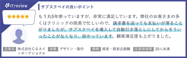 サブスクペイでは、毎月の決済処理を自動化して未回収リスクを低減できる点や、カスタマーサポートの手厚さを高く評価していただいております。