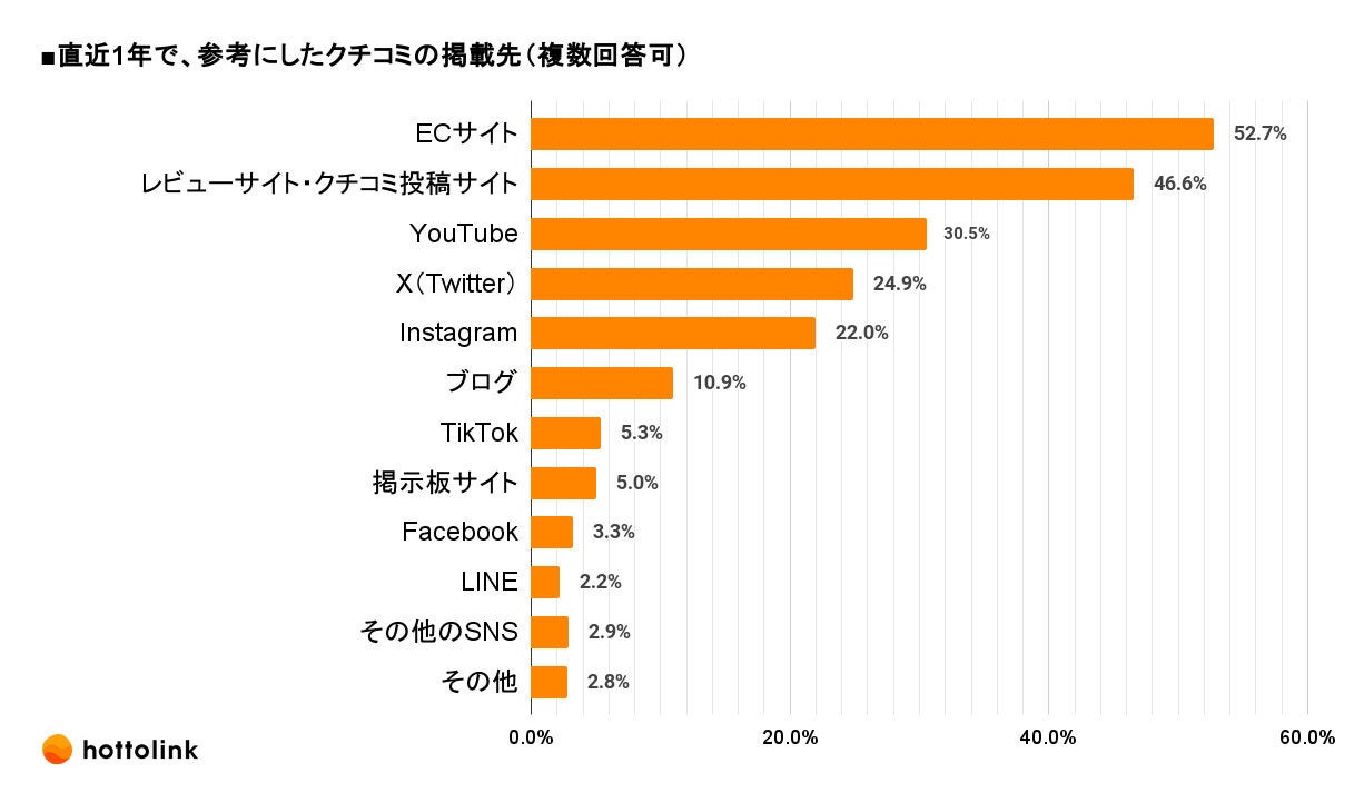 ・参考にしたクチコミの掲載先は「ECサイト」が52.7%で最多