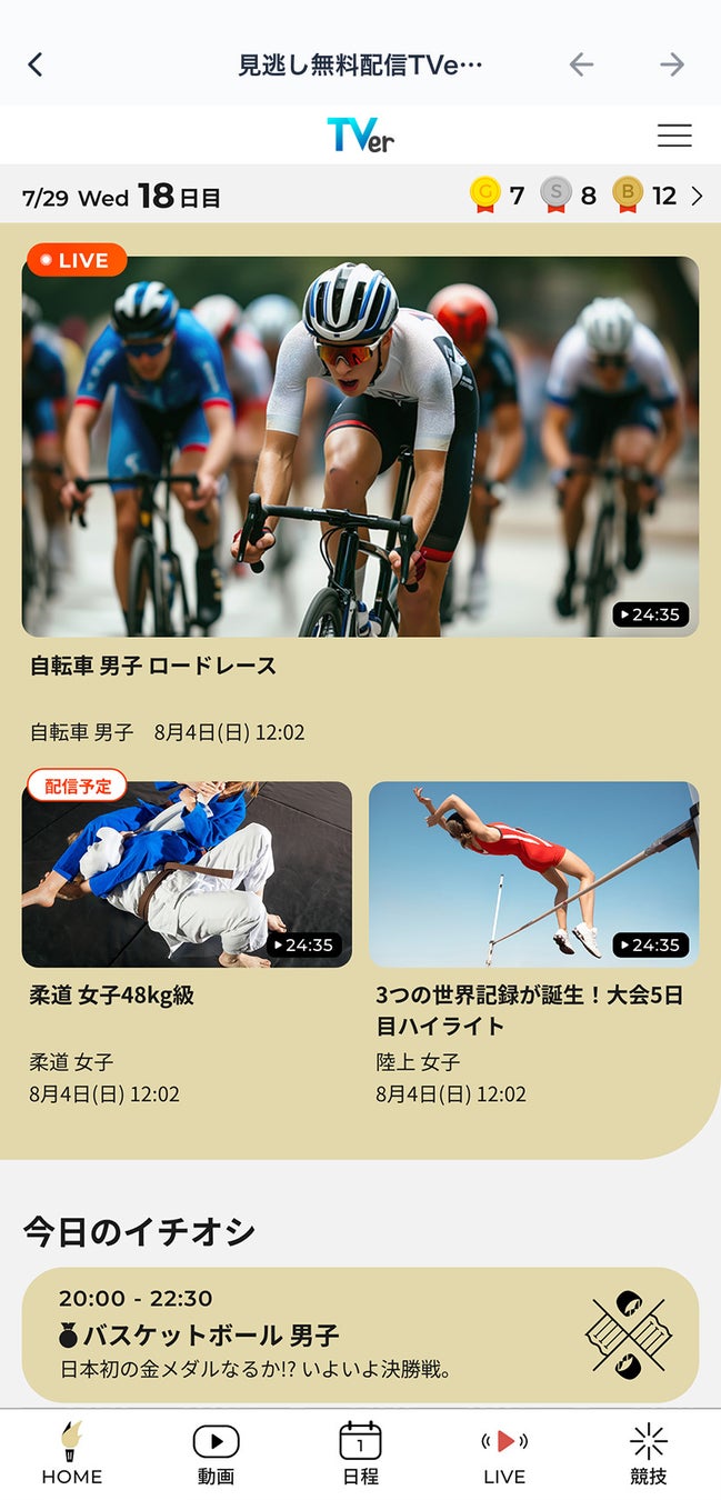 開会に先立ってTVer内にオリンピック特設ページを開設し、開会式2日前に幕を開ける7月24日(水)サッカー男子予選のウズベキスタン対スペイン戦(日本時間22:00~)、アルゼンチン対モロッコ戦(日本時間22:00~)から、TVerでのライブ配信がスタートします。