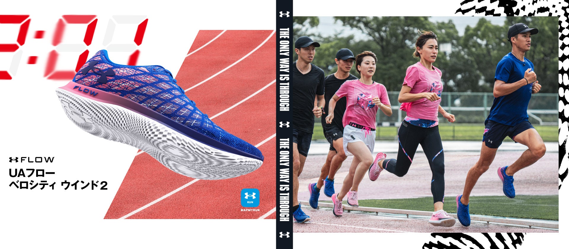 「UAフロー ベロシティ ウインド2」は、革新的なクッションフォーム「UAフロー」を搭載し、スピードを追求するランナーの足と一体化することで、足が地面を捉える感覚、身体に伝わる推進力など、ランナー本来の力を引き出します。