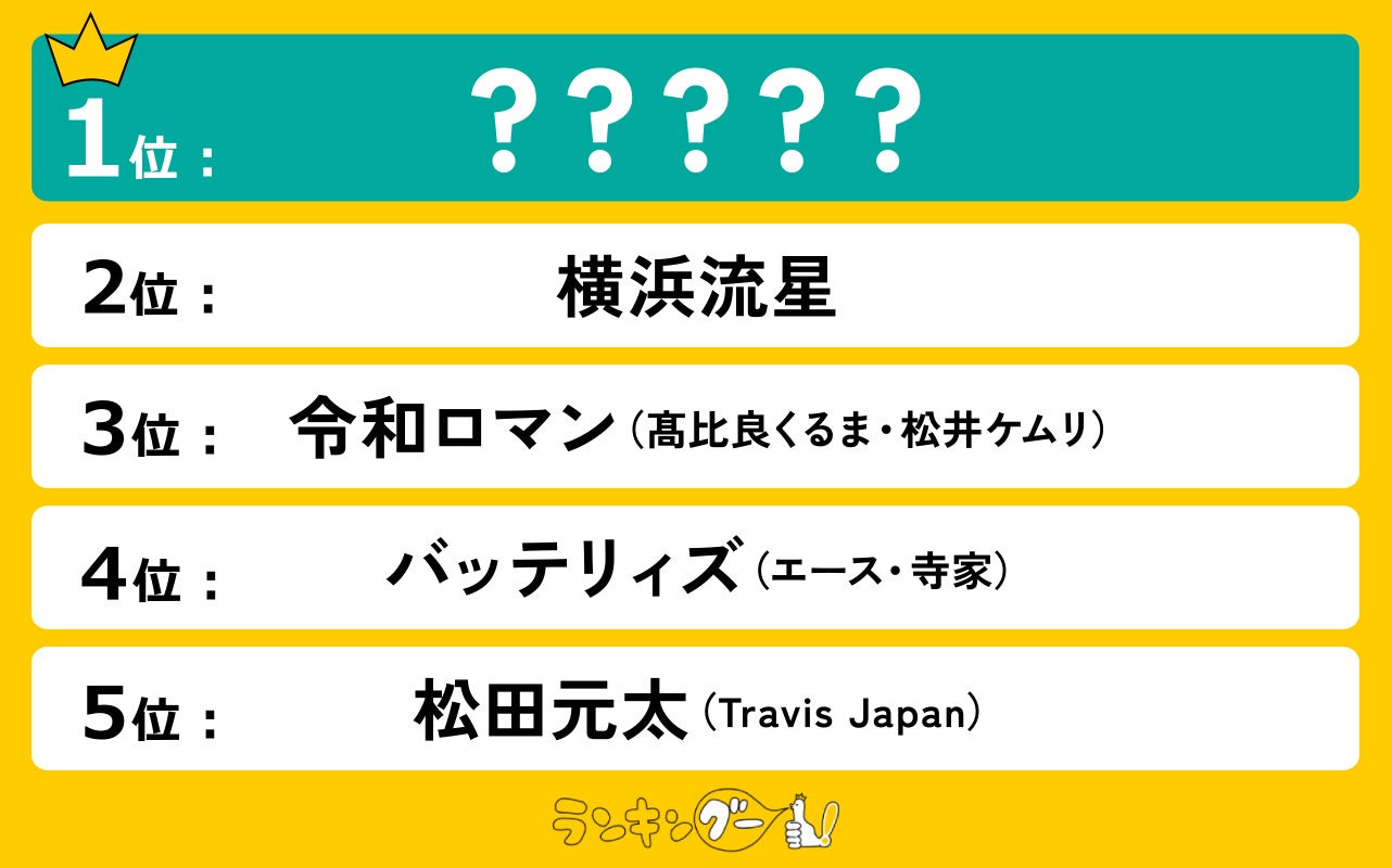 1位は、2025年度前期放送予定の朝ドラでヒロインを演じる、今田美桜さんに決定!1票差で2位にランクインしたのは、大河ドラマで主演として活躍中の横浜流星さん。3位は「M‐1グランプリ2024」で史上初の2連覇を達成した、令和ロマン。4位は「M‐1グランプリ2024」で準優勝を果たした、バッテリィズ。そして5位は、超実写映画「ライオン・キング:ムファサ」のタカ役で声優に初挑戦した、松田元太さんという結果となりました!
