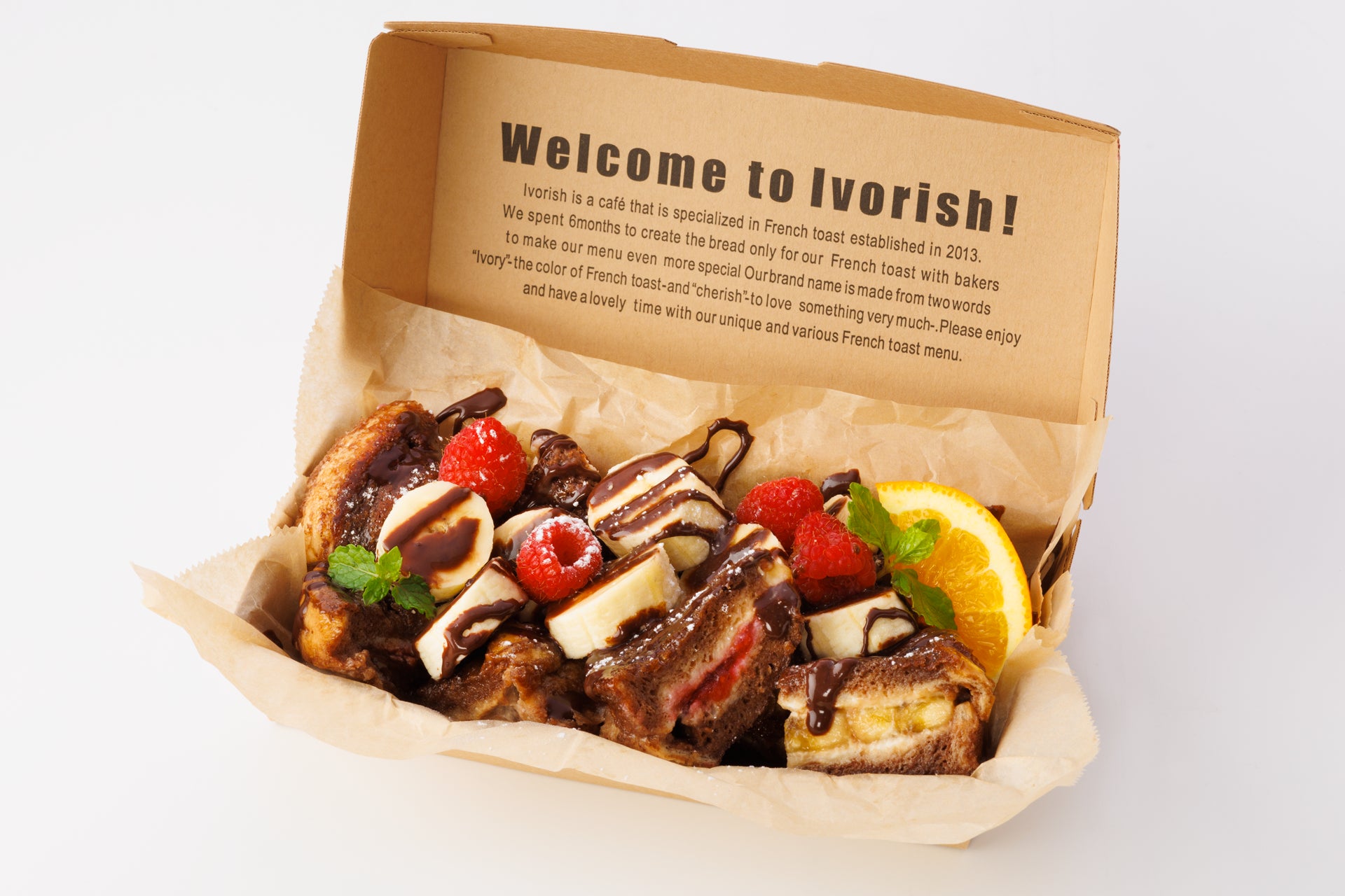 Ivorish(アイボリッシュ)はフレンチトースト色を表現するIvory(アイボリー)と、英語で「愛情を込めて大切にする」という意味のCherish(チェリッシュ)ということばを掛け合わせた造語です。「大切なお客様が幸せな香りと時間に包まれますように」との想いを込め、こだわりのフレンチトースト、焼き菓子をご提案しております。