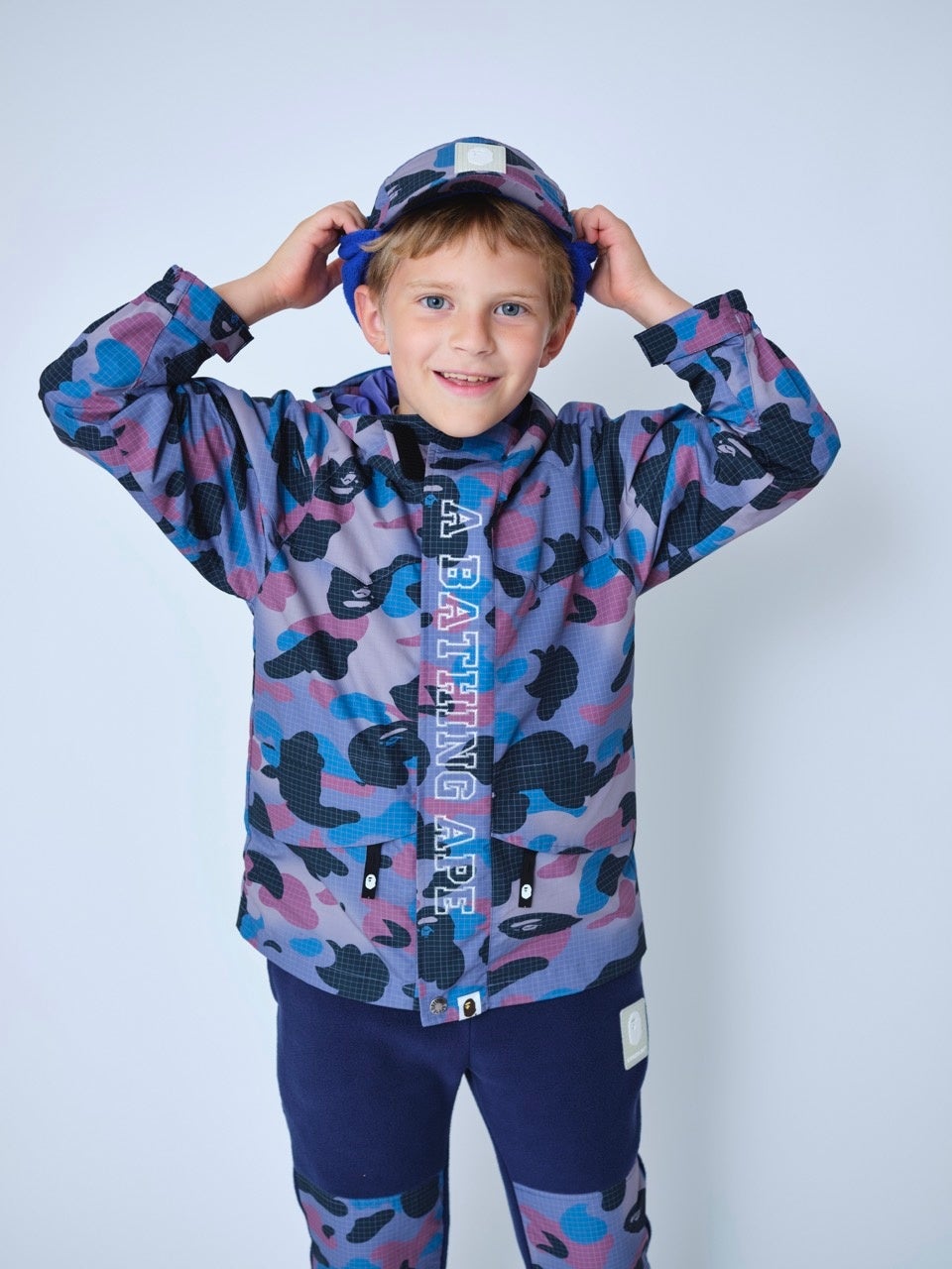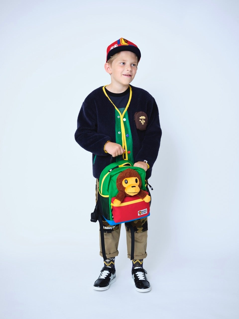 2022年秋冬シーズンのキッズコレクションは、「スクール」「アウトドア/ミリタリー」「BABY MILO®」の3つのカテゴリーで構成されています。普段使いのカジュアルファッションからお出かけ用のセミフォーマルまで、ポップなグラフィックとプレイフルな色使いでBAPE KIDS®︎の世界観を存分に楽しめるコレクションとなっています。