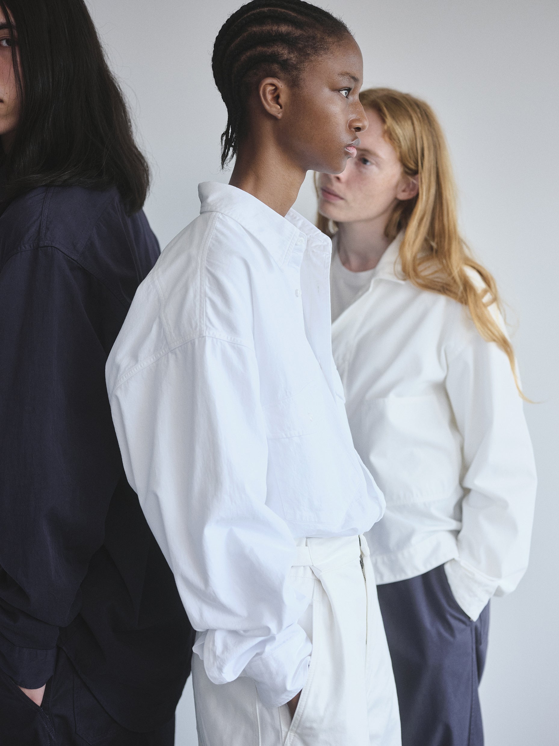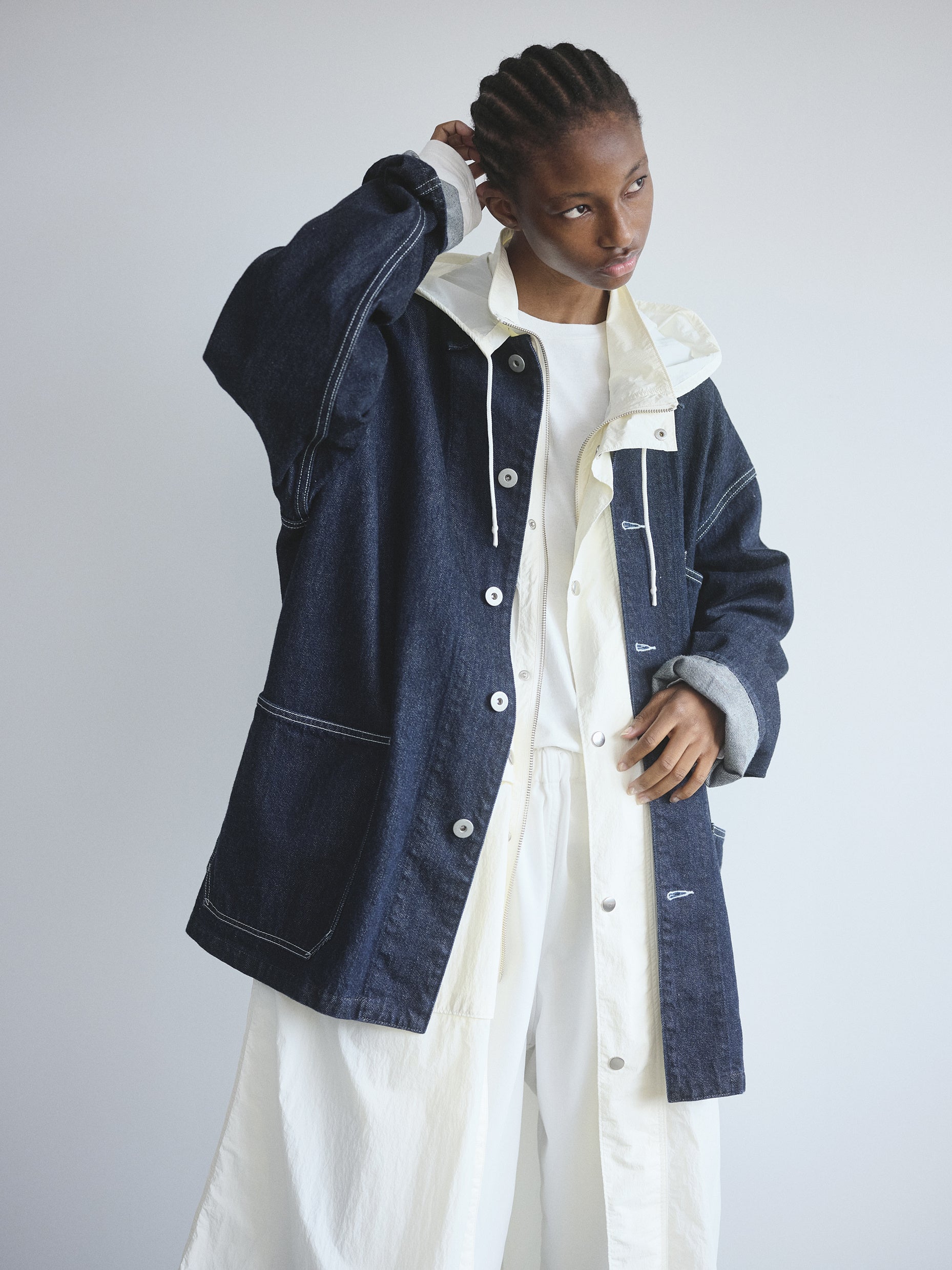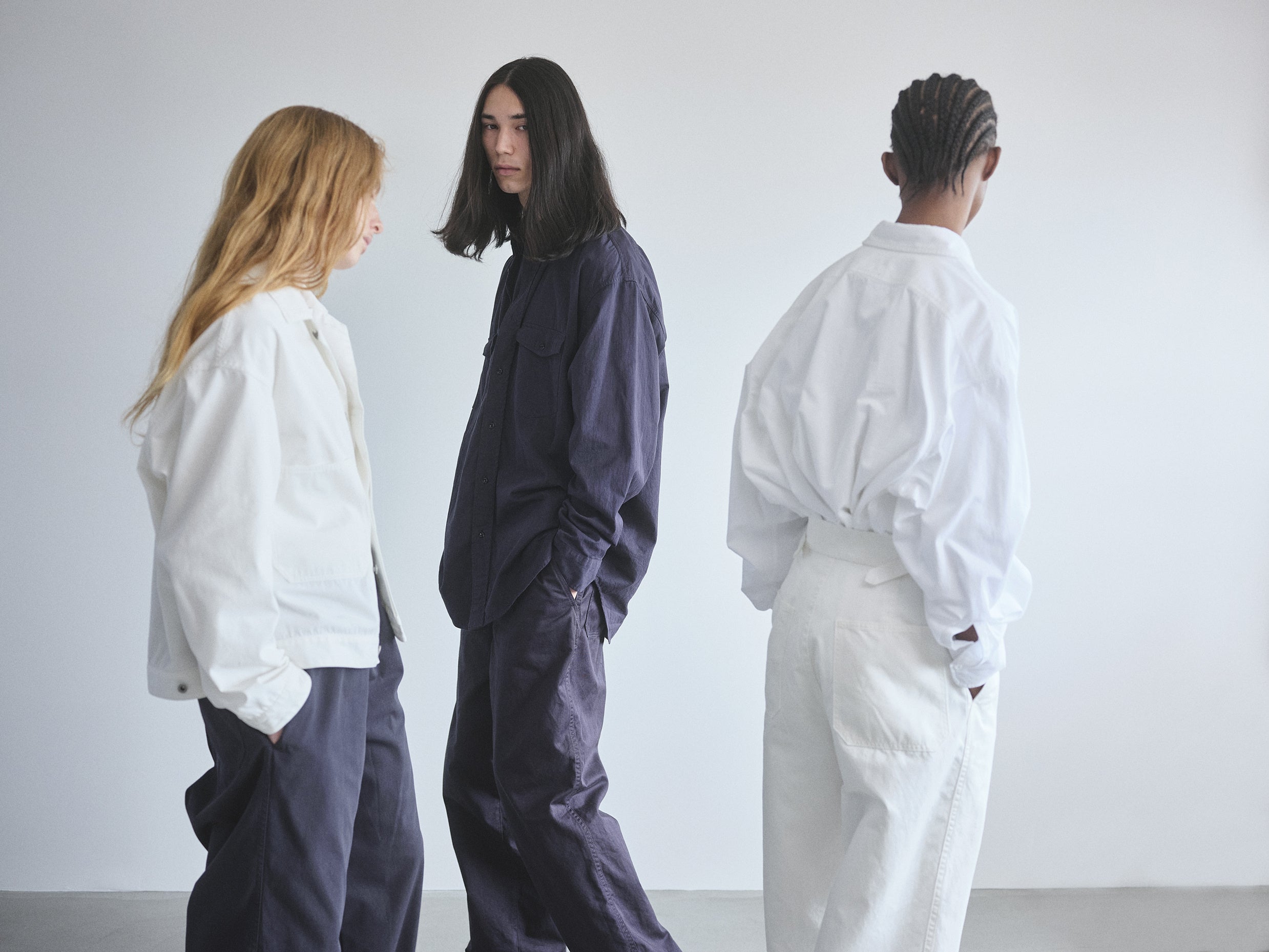 YLÈVEのデザイナー田口令子と、バイヤーやディレクションなど多方面で活躍する金子恵治氏との対話をきっかけに生まれたこのラインは、さまざまな垣根を超えて楽しんでいただけるカジュアルでユニセックスな仕様。