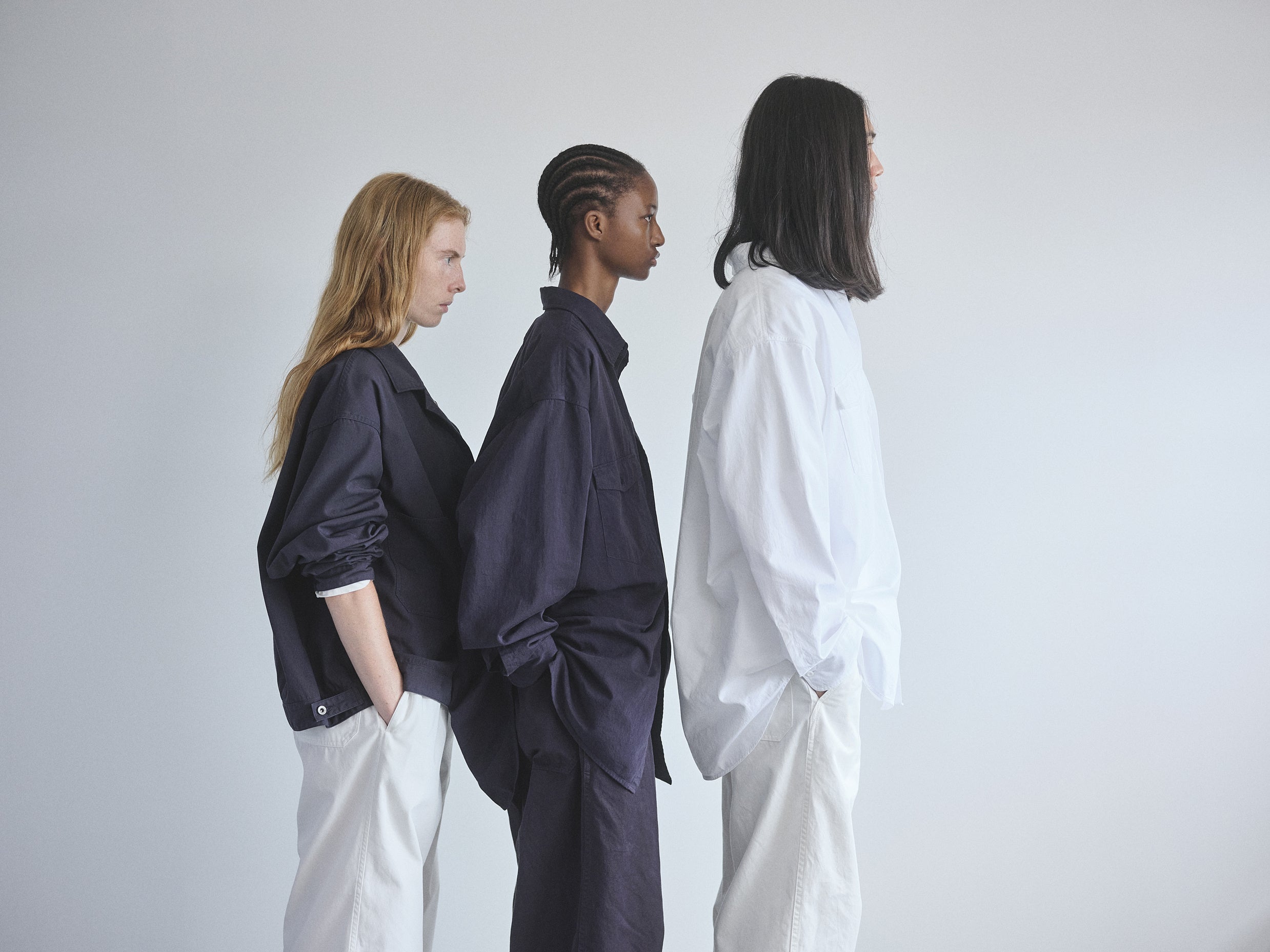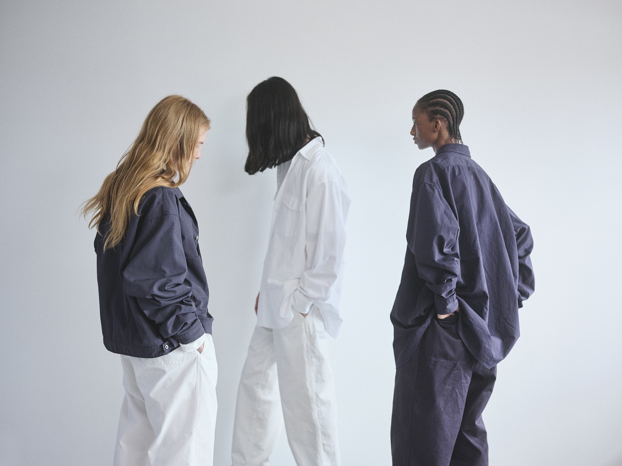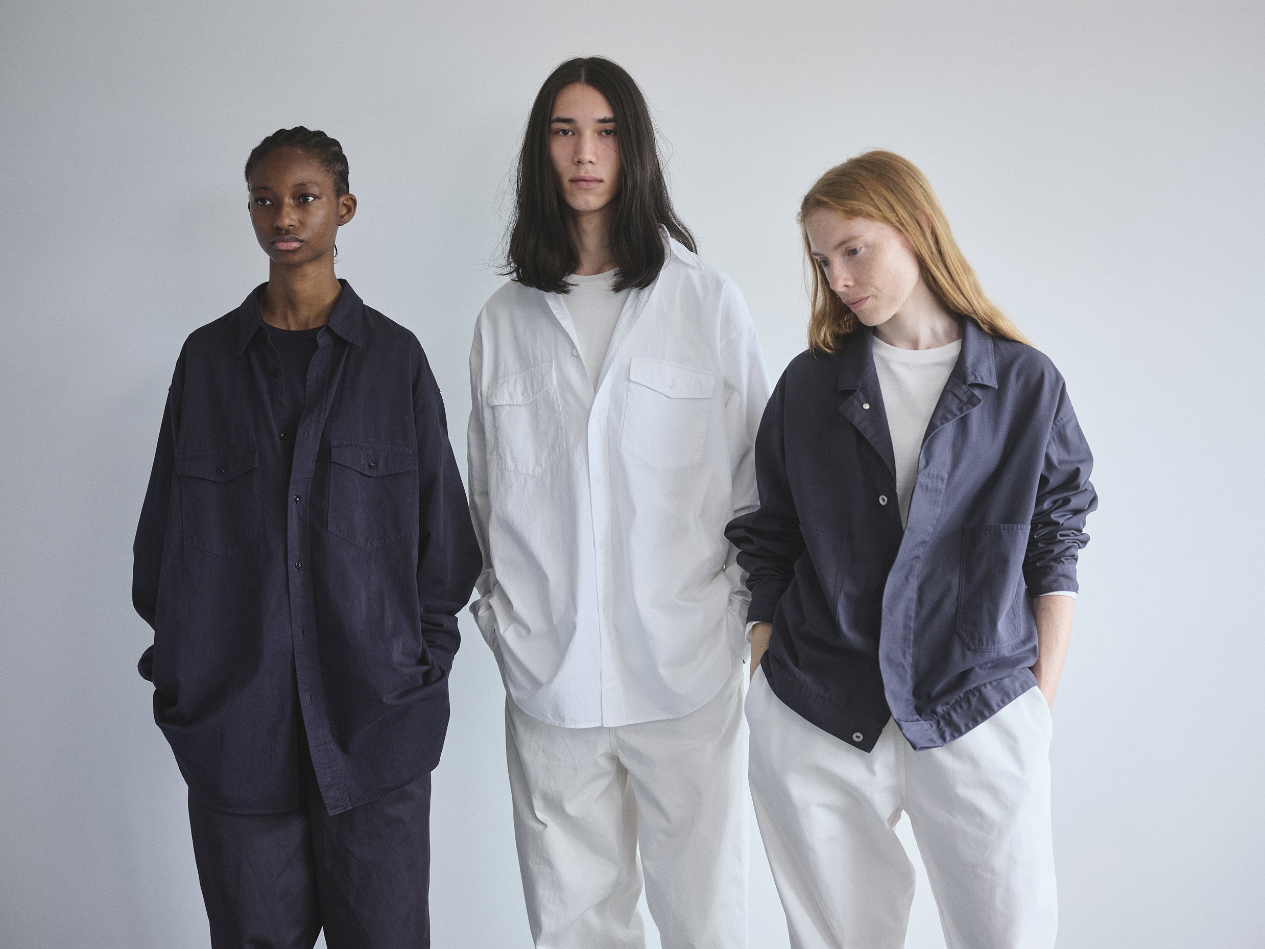 揃えるアイテムは、白とネイビーの2色展開。着る方の好みでサイズを選び、自然環境にも配慮した素材を用いるなど、リラックス感のあるデイリーウエアを展開します。2/24(金)より発売。