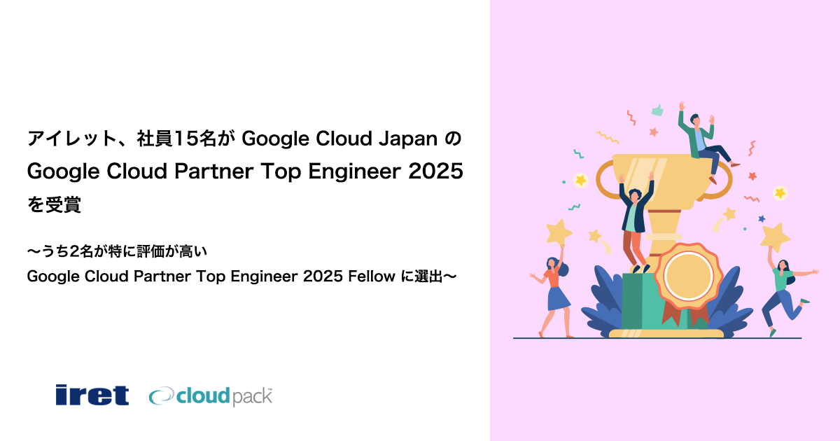 システム・アプリケーションの開発、グラフィック・UI/UX デザイン制作からインフラの構築・運用までをワンストップで提供するアイレット株式会社(本社:東京都港区、代表取締役社長:岩永充正、以下 アイレット)は、Google Cloud Japan が高い技術力を持ったエンジニアを表彰するプログラムである 「Google Cloud Partner Top Engineer 2025」において、社員15名が受賞したことをお知らせします。また、その中でも特に素晴らしい貢献をした人物が表彰される「Google Cloud Partner Top Engineer 2025 Fellow」に、 廣山 豊と西田 駿史の2名が選出されました。