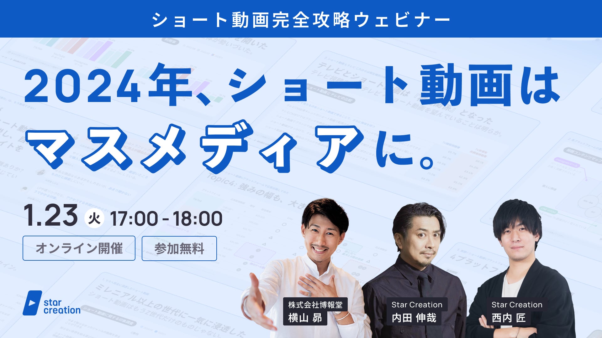 あわせて「ショート動画完全攻略ウェビナー - 2024年、ショート動画はマスメディアに。」を2024年1月23日(火)に開催