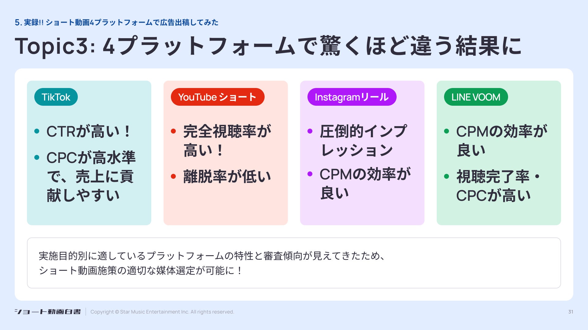 Topic 5:実録!! ショート 動画4プラット フォームで広告出稿してみた