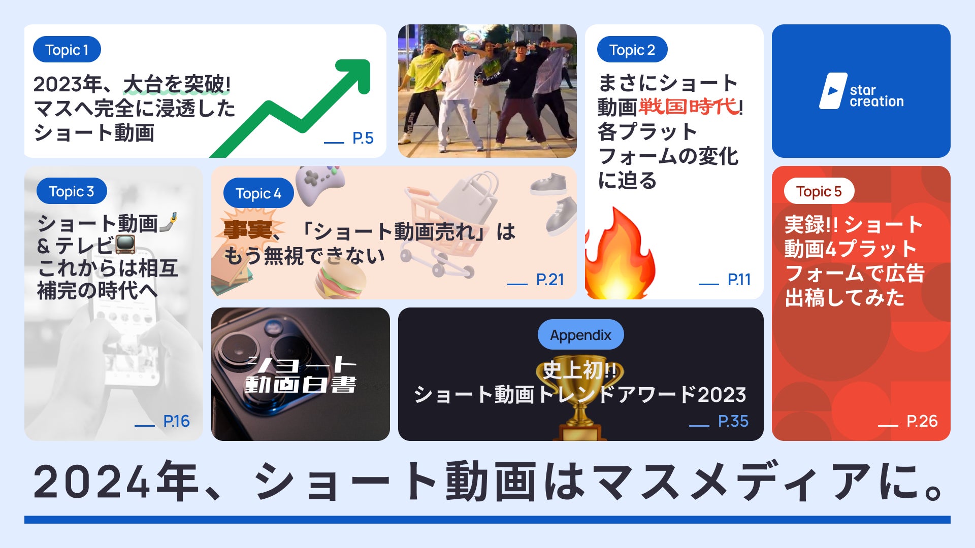 「2024年、ショート動画はマスメディアに。」Star Creationがショート動画主要4プラットフォームを調査したレポート『ショート動画白書 vol.3』を公開