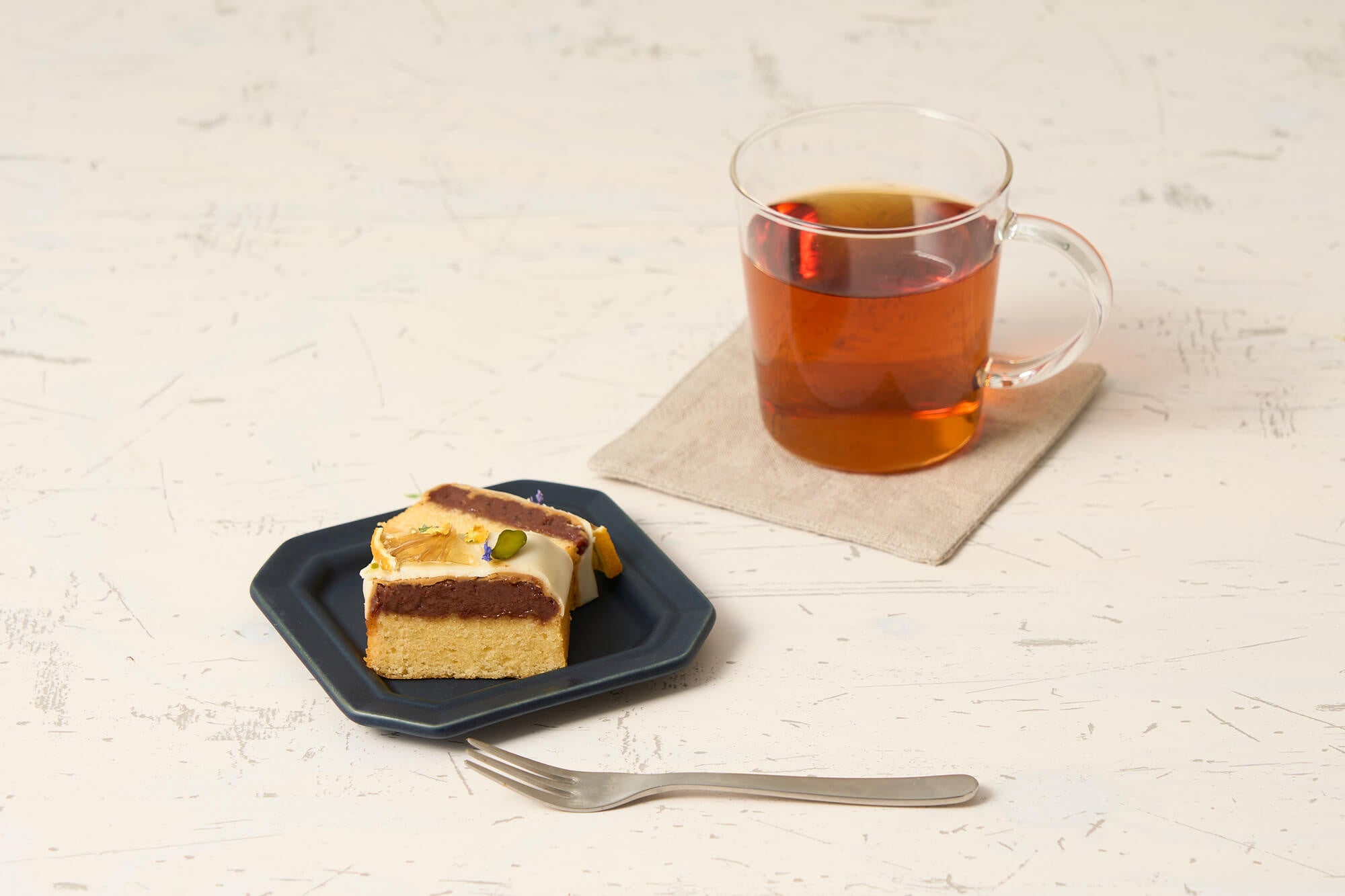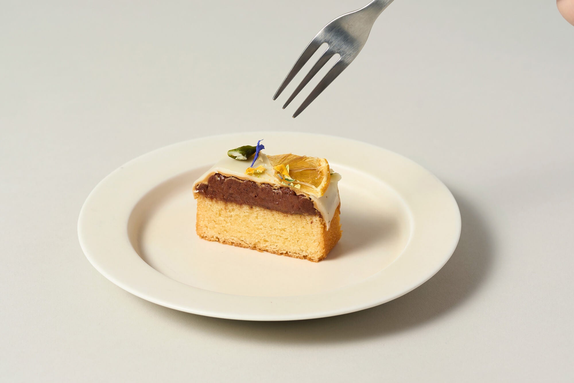 和歌山県・善兵衛農園の木熟レモンの風味をしっかりと閉じ込めた生地に、果実感あふれるレモン入りのフルーティなチョコレートガナッシュを重ね、仕上げに2種のチョコレートのグラサージュをまとわせました。トップには、ドライレモンの輪切りとエディブルフラワーを繊細にあしらい、箱を開けた瞬間に心が華やぐ佇まいに。