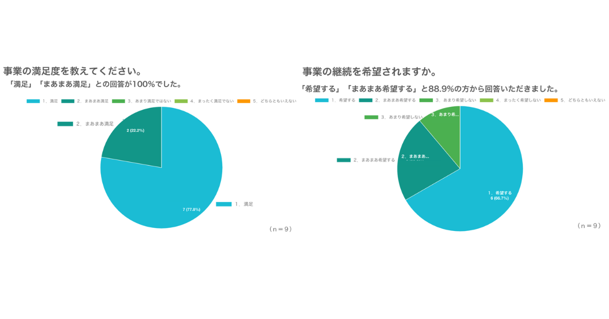 事業の継続については、「まだ質問がなくても、いつでも専門家に聞けるというには安心感につながる。」「不安な時、相談に出かけるのは大変。オンラインで手軽に相談できるのは素晴らしい」などの理由から、希望する/まあまあ希望すると回答された方が88.9%と非常に高い結果となりました。