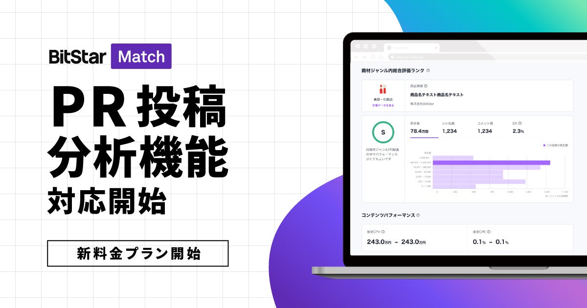 PR効果を可視化する「PR投稿分析機能」をインフルエンサーマーケティングプラットフォーム「BitStar Match」にて提供開始