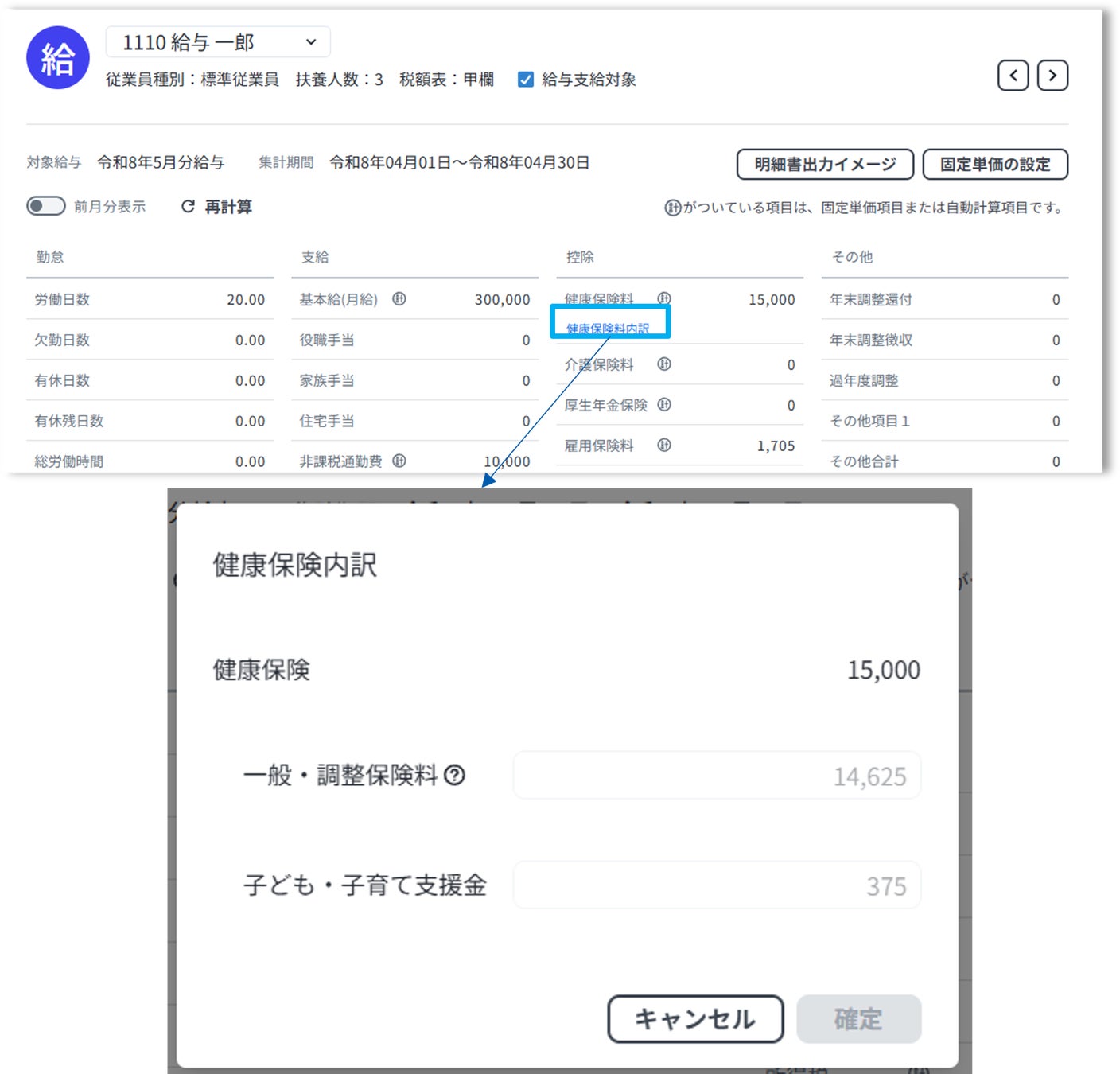 2026年4月分以降の給与計算において、「子ども・子育て支援金制度」に基づく保険料を自動で計算し、源泉控除に反映します。