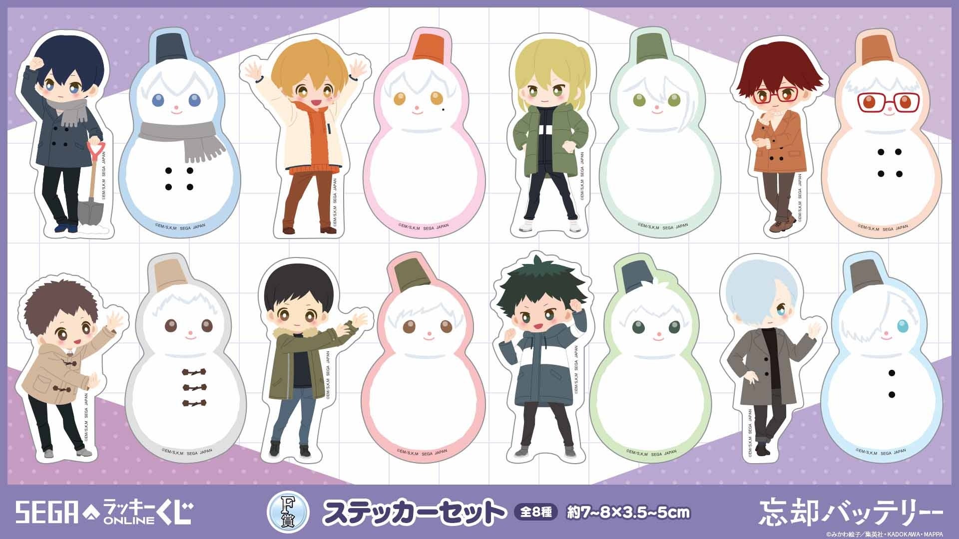 当くじは、「雪遊び」をコンセプトに書き起こしたデフォルメイラストを使用したオンラインくじです。『忘却バッテリー』のキャラクターたちが思い思いに、雪だるまを作るすがたがあなたに癒しをお届けします。