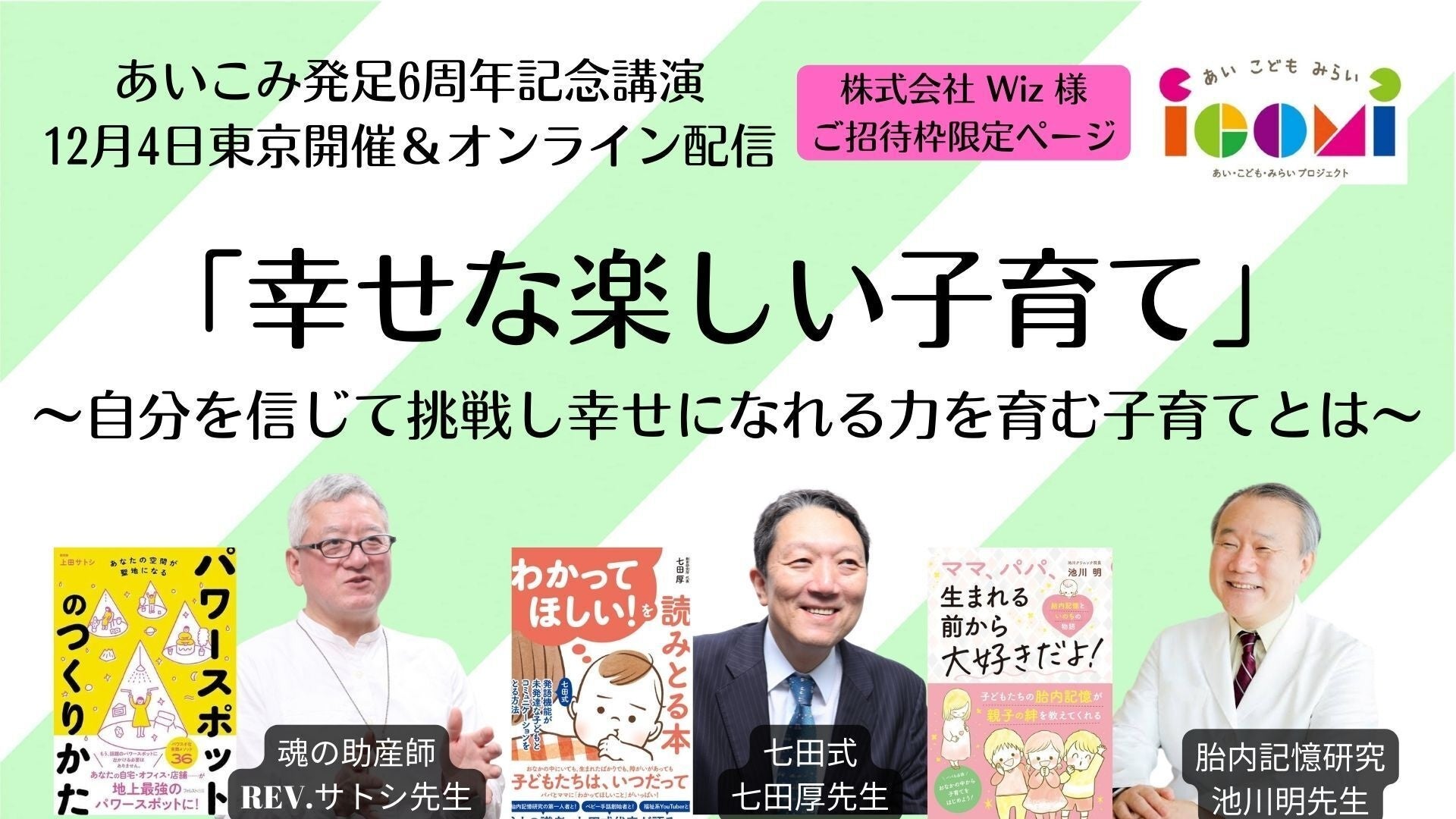 12月4日(日)、あいこみ(Icomi愛 子ども 未来プロジェクト)は、発足6周年を記念するイベントとして「幸せな楽しい子育て」をテーマとした講演会を開催します。