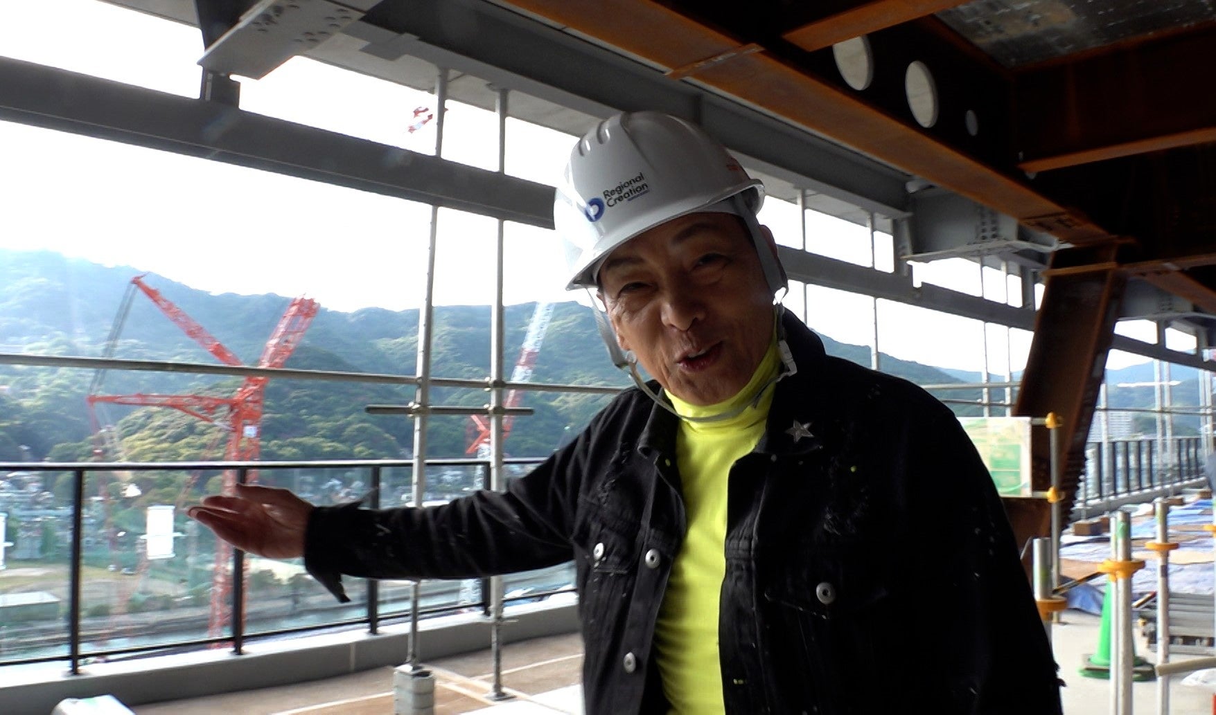 建設現場に立ち入るやいなや、錦野さんは「すごい!最高!」と驚きの表情を見せ、「東京にもどこにもこんな場所はない。ここは新しい長崎。来年、完成した時は来たいです!長崎に移住しようかな」と話してくださいました。