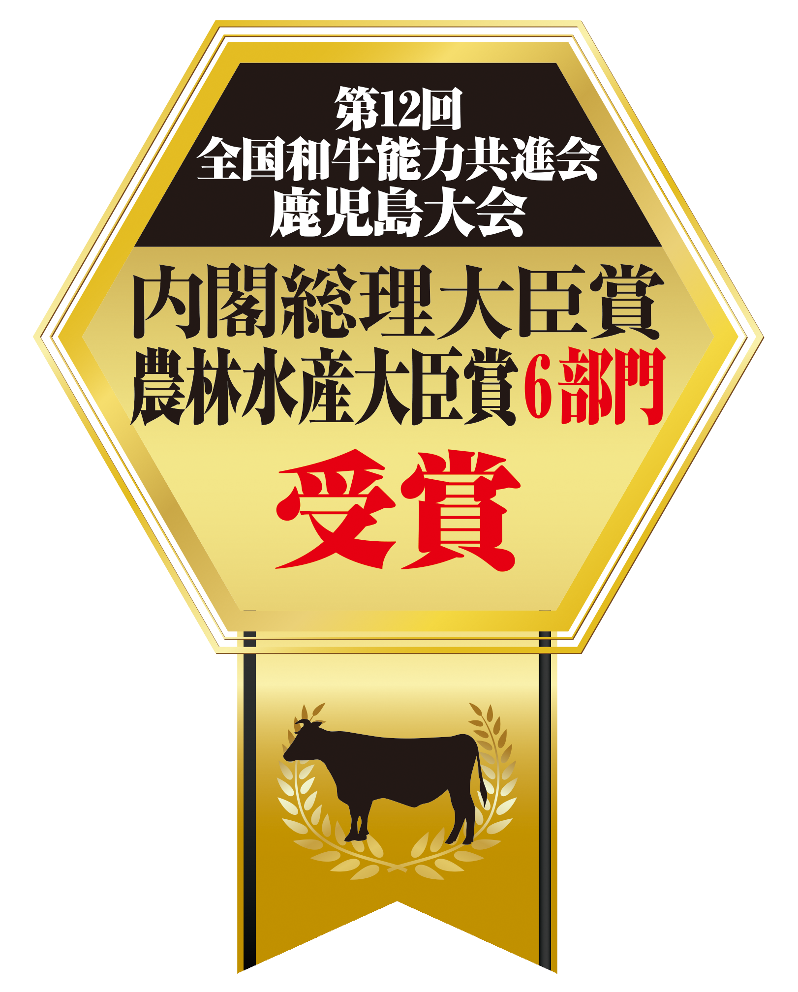 ※1 第12回全国和牛能力共進会鹿児島大会で、9部門中6部門1位で農林水産大臣賞・「種牛の部」の「第4区(繁殖雌牛群)」で内閣総理大臣賞を受賞