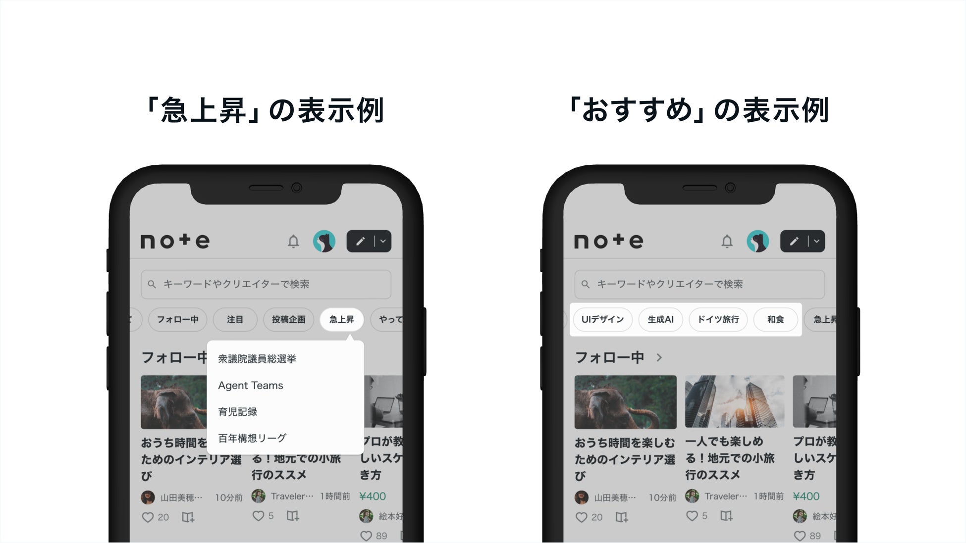 今回はカテゴリページを起点としていますが、今後はnoteのトップページ全体、アプリ、メール通知など、あらゆる読者との接点におなじ技術を展開していきます。note内で読者と記事がつながる自立した導線を強化することで、クリエイターが安心して創作に集中できる環境を整えていきます。