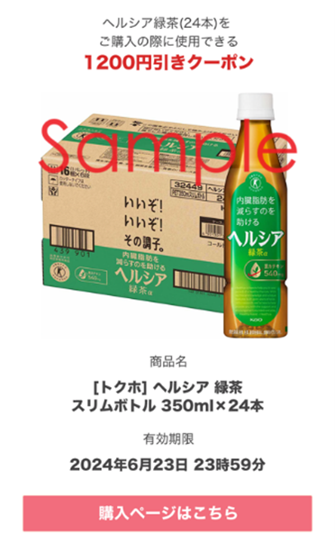 指定店舗で使えるクーポン(花王ヘルシア緑茶350mlスリムボトルご購入の際1本につき50円引きクーポン)500名様