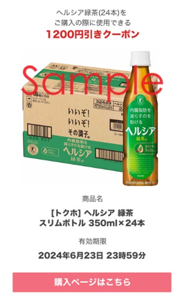 賞品:ECサイトクーポン([トクホ] ヘルシア 緑茶 スリムボトル 350ml×24本 1200円引きクーポン)2,500名様