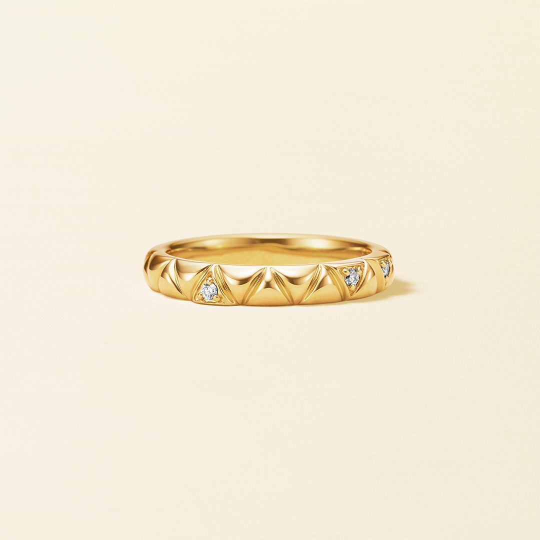 太陽の輝きをイメージした地金が立体的にデザインされた、洗練されたシリーズ。側面にセッティングされたダイヤモンドがさりげなく輝くネックレス、ピアスは身に着けるだけでリュクスな輝きをプラスしてくれます。三角形が連なるふっくらとしたフォルムが程よく個性を与えてくれるイヤーカフやリングも登場。ダイヤモンドと地金の2way仕様で、気分やスタイルに合わせてお楽しみいただけるデザインで耳元に華やかさをプラスします。サークルを連ねた個性的なフォルムが印象的なネックレス、リングは太陽の輝きをイメージしたデザインと、地金とダイヤモンドのコントラストがエレガントな雰囲気を演出します。太陽の力強いパワーを携えたジュエリーは、お守りとして新しいことを始める願掛けとしてもおすすめです。