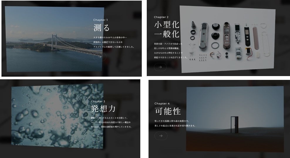 現在は「美しくを、変えていく。」をスローガンに掲げ、機器との相乗効果によって理想の美しさへと近づくため、化粧品の開発にも注力。まだ誰も足を踏み入れていない未知のエリアにユニークな価値をつくることをモットーに、革新的な製品開発に全力を注ぎ続けています。