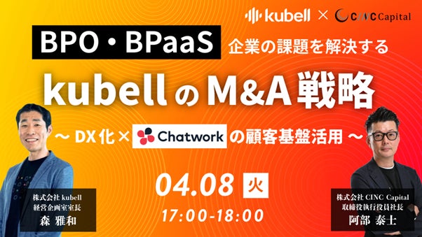 【株式会社CINC】子会社のCINC Capitalによる経営者向け『BPO・BPaaS企業の課題を解決する!kubellのM&A戦略 ~DX化×Chatworkの顧客基盤活用~』開催のお知らせ