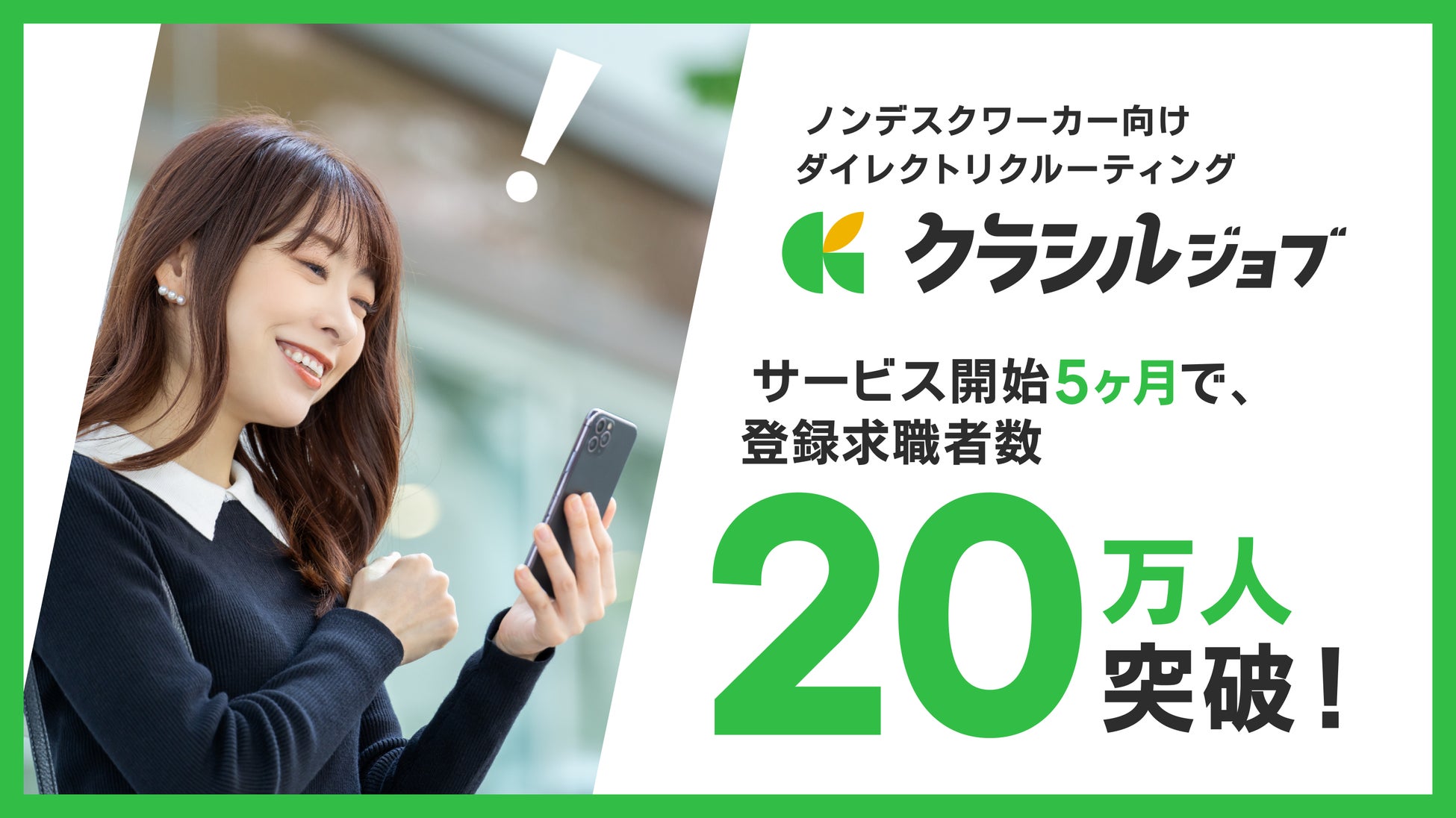 5ヶ月で登録求職者数20万人突破!「クラシルジョブ」、ノンデスクワーカー向けダイレクトリクルーティングサービスが急成長
