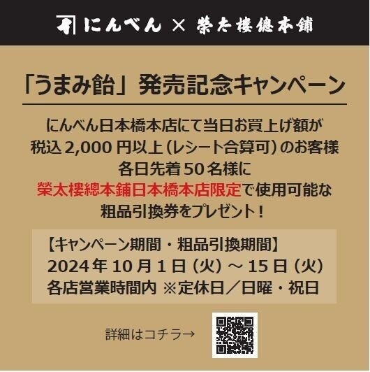 榮太樓總本鋪「榮太樓飴」×にんべん「金色の鰹だし」 日本橋コラボ商品「うまみ飴」 2024年10月1日より期間限定発売