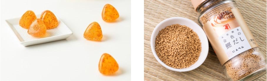 今回の「うまみ飴」は3年ほど前に榮太樓細田さまより企画のお声掛けをいただきました。実際に本格的な開発に着手したのは1年前です。最後までだしの風味を味わっていただけるよう、飴に溶けにくい顆粒だし「金色の鰹だし」を使用することが決まり、「本当においしいかつお節の飴」のために何度も試作していただいたと聞いています。最終的に提出いただいたいくつかの試作品から、今回の味わいを決定いたしました。日本の食文化が海外でも広がっていくよう商品名を「うまみ飴」としました。