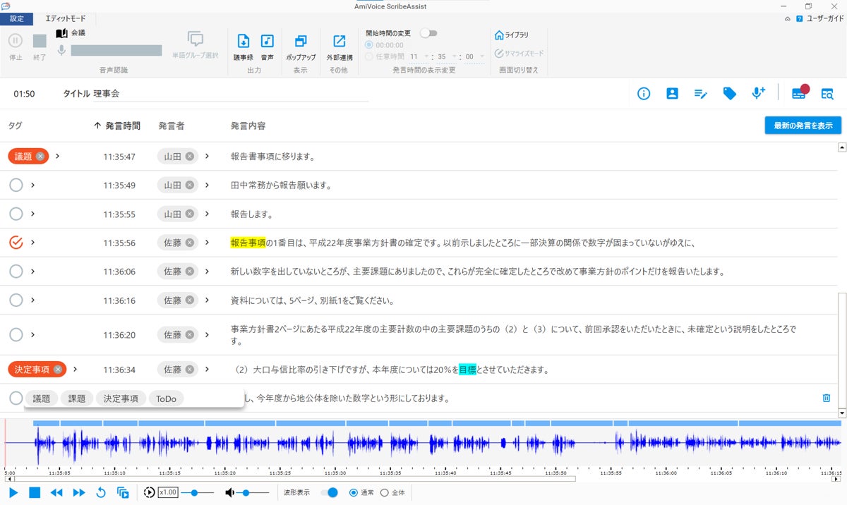 AI音声認識文字起こし支援アプリケーション「AmiVoice® ScribeAssist」に会議運営・要約議事録作成をサポートする「ファシリテーションモード」を追加。