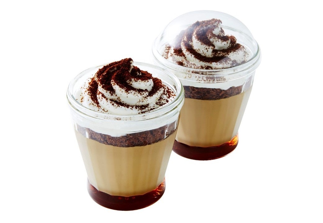 コーヒーソースで仕立てたコーヒーミルクプリンに、チョコレートスポンジとホイップクリームを合わせたコーヒーが香るプリンパフェ。天面にはエスプレッソコーヒーパウダーをトッピングし、クリームとスポンジの間にしのばせたサクサクのアーモンドクロカントが食感のアクセントに。父の日のプチギフトにもぴったりです。