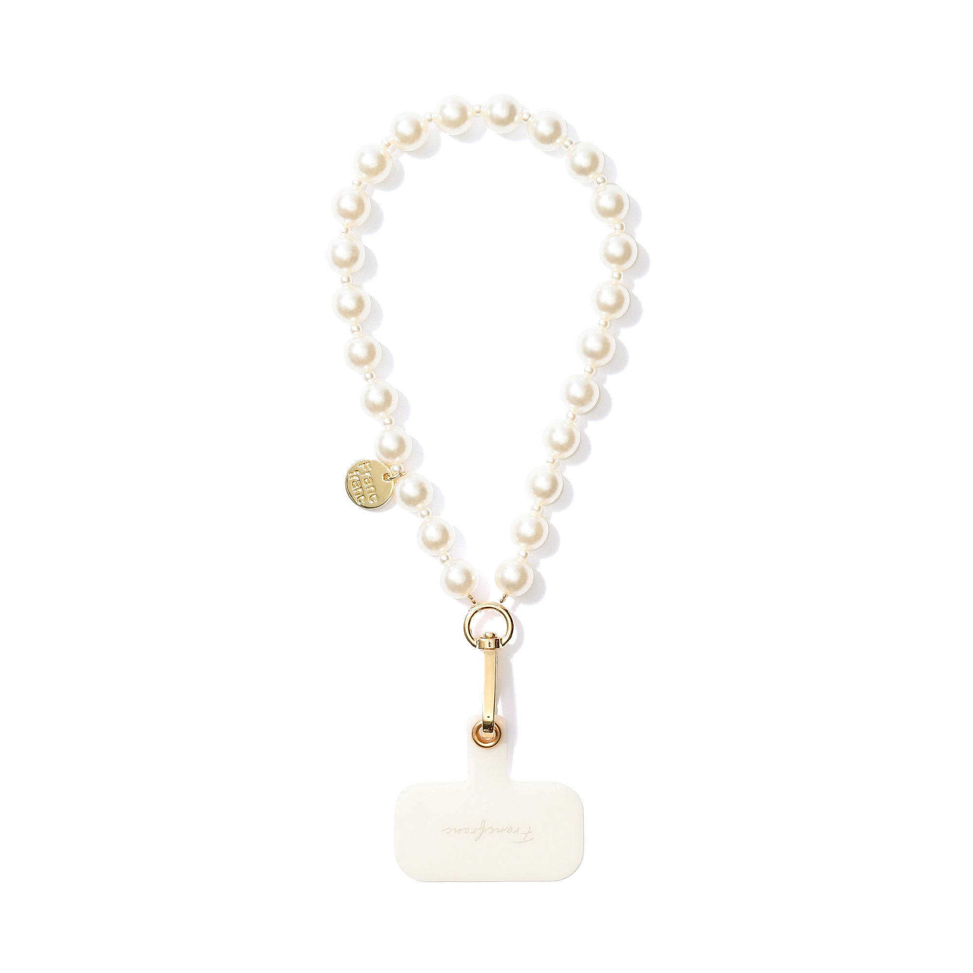 スマートフォンに付けることができるハンドストラップです。トレンド感のある素材でコーディネートのポイントになるチュール、高級感を演出できるパール、華奢で小さなパールに小さなリボン結びがついたキュートなパールリボン、かっこいいスタイルにもあわせやすいチェーン、どんなシーンでも使いやすいシンプルタイプを展開します。スマートフォンケースの間に先端部分のシートを挟むことで取り付け可能です。