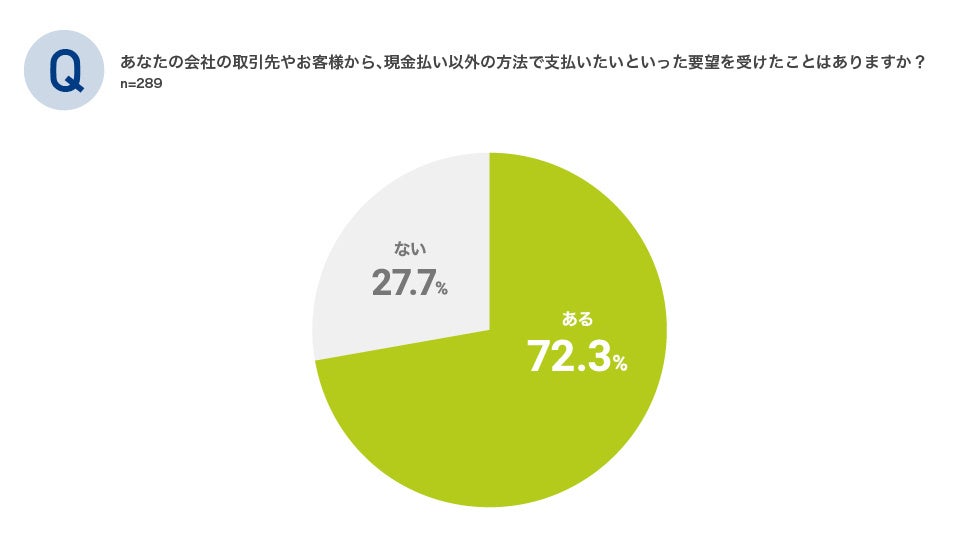 集金を担当する現場作業員の72.3%は「取引先やお客様から、現金払い以外の方法で支払いたいといった要望を受けたことがある」と回答。