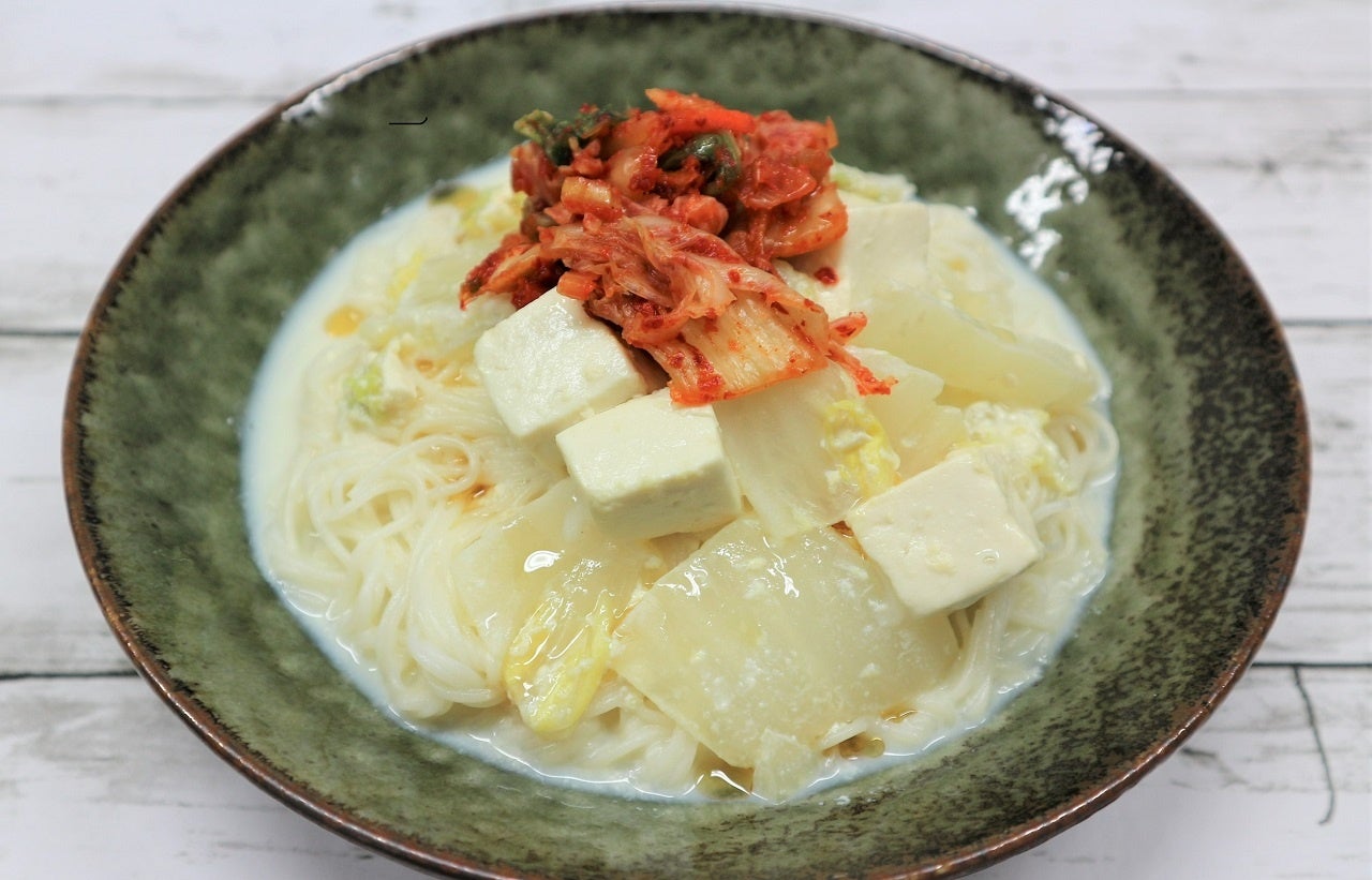 寒いこの時期にぴったりの、からだが温まるそうめんの食べ方として考えられた『簡単豆腐豆乳にゅうめん』です。豆乳ベースの真っ白なスープの変わり種にゅうめんですが、驚くほど簡単。「いつもとは少し違うものを作りたい」そんな気分の日にどうぞ!