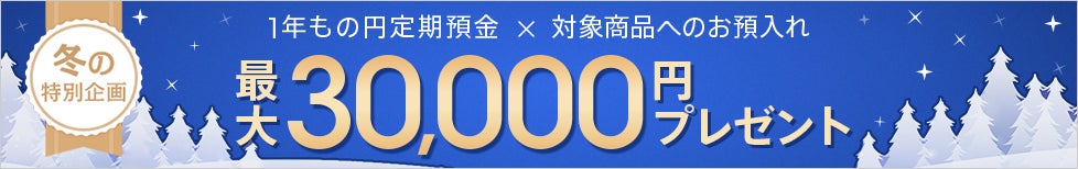 ~1年もの円定期預金を年0.13%(税引前)の特別金利で提供するほか、対象商品へのお預け入れで最大30,000円をプレゼント~