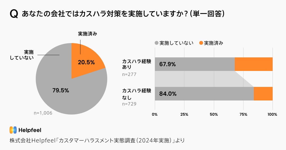 約8割の企業でカスハラ対策が未着手。カスハラ発生企業でも約7割が対策進まず