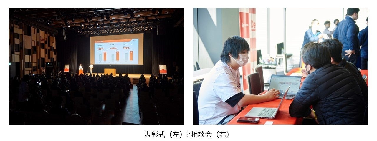 また、今回の「DeAward 2022」は全国の加盟店の皆さまにご参加いただけるよう、オンライン・オフラインを融合させた形式での開催となり、全国から430名以上の方々にご参加いただきました。表彰式の他にも、加盟店の担当者さまによる「ポストコロナにおけるデリバリーの活用方法」をテーマにしたパネルディスカッションや、『出前館』の担当者や飲食事業に関連する企業様との相談ブースの設置など、より多くの加盟店のみなさまとの交流が可能となるようなプログラム実施いたしました。
