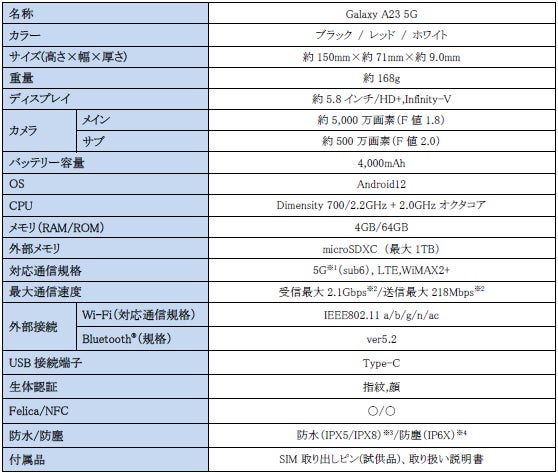 UQ mobile オンラインショップ:https://www.uqwimax.jp/mobile/products/sp/galaxy_a23_5g/
