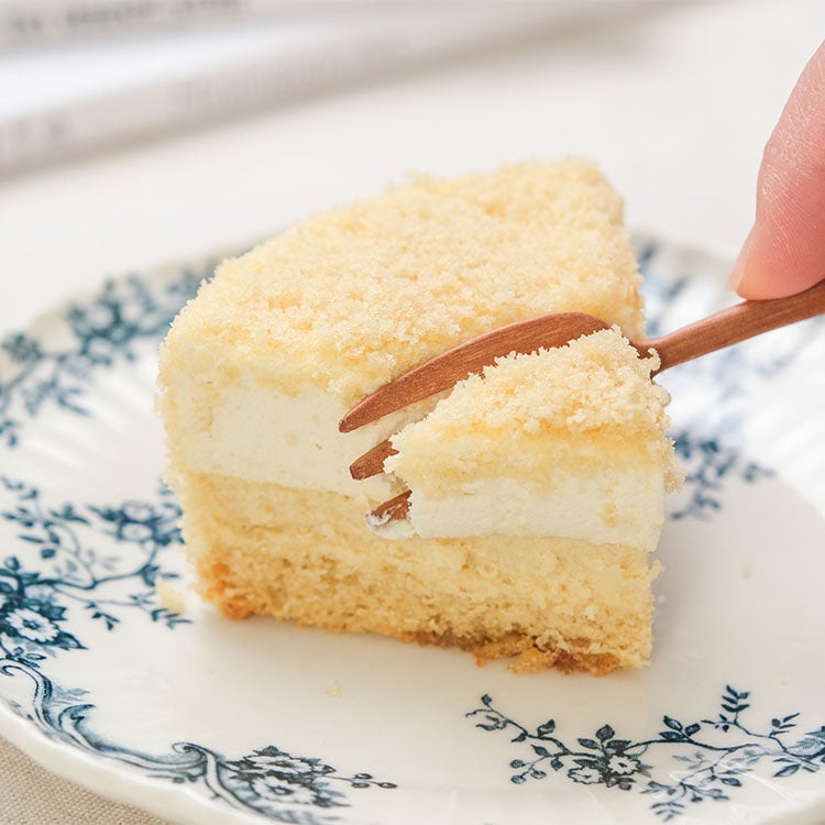 本製品は、ベイクドチーズのとろりとした濃厚な口あたりと、レアチーズのなめらかで軽やかな口あたりを二層に重ねたチーズケーキです。 最大の特徴は、味の強さで押すのではなく、繊細なくちどけの違いによって生み出される「食感のグラデーション」です。ひと口ごとに異なるくちどけが広がり、食べ進めるほど印象が変わります。甘さはやさしく、後味はすっきり。おやつ時間にも食後にも合わせやすい一品です。